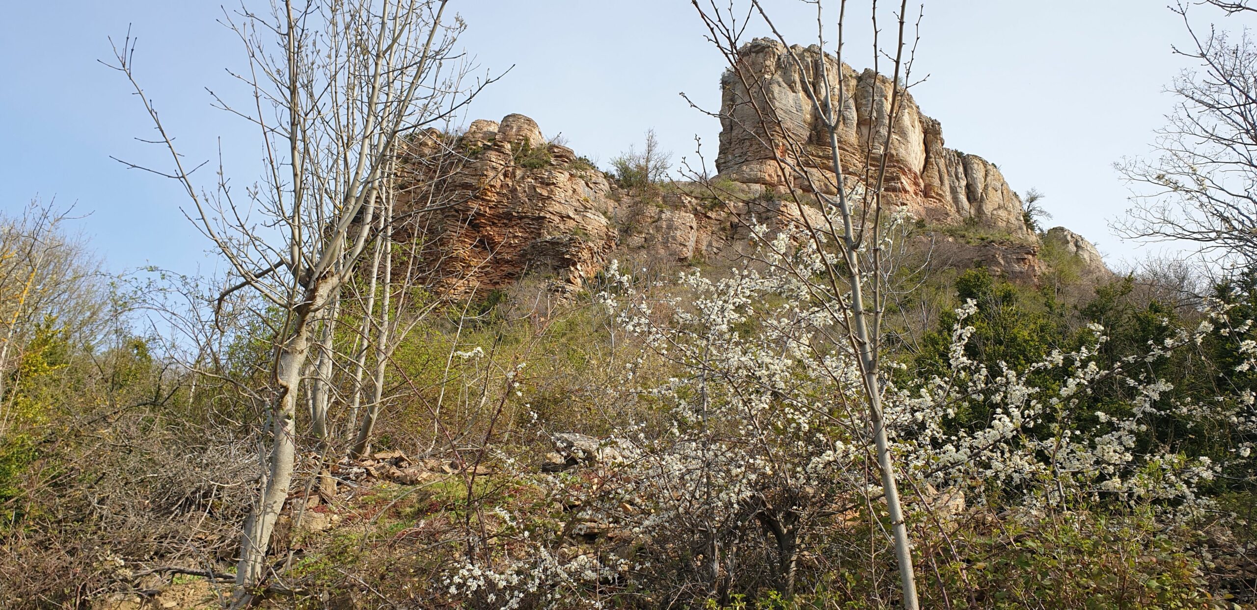 Il est dommage de donner de telles informations au public nombreux qui parcourt le chemin vers le rocher. Déprécier la forêt naissante est une erreur écologique. Une forêt naturelle est d’un grand intérêt pour l’Europe, où les forêts primaires ont disparu. Il s’agit d’une chênaie pubescente sur buis, qui avance dans les paysages dès que l’homme n’utilise plus les terres. Le buis s’installe aussi sur les lisières forestières comme on le voit sur le premier plan de la photo ci-dessous. À l’arrière plan, les plantations défigurent le paysage.