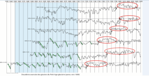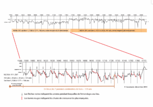 A partir de 1772, les courbes de croissance des hêtres changent complètement en s’améliorant : la moyenne de croissance pour ces derniers 247 ans est de 0,80 mm/année.