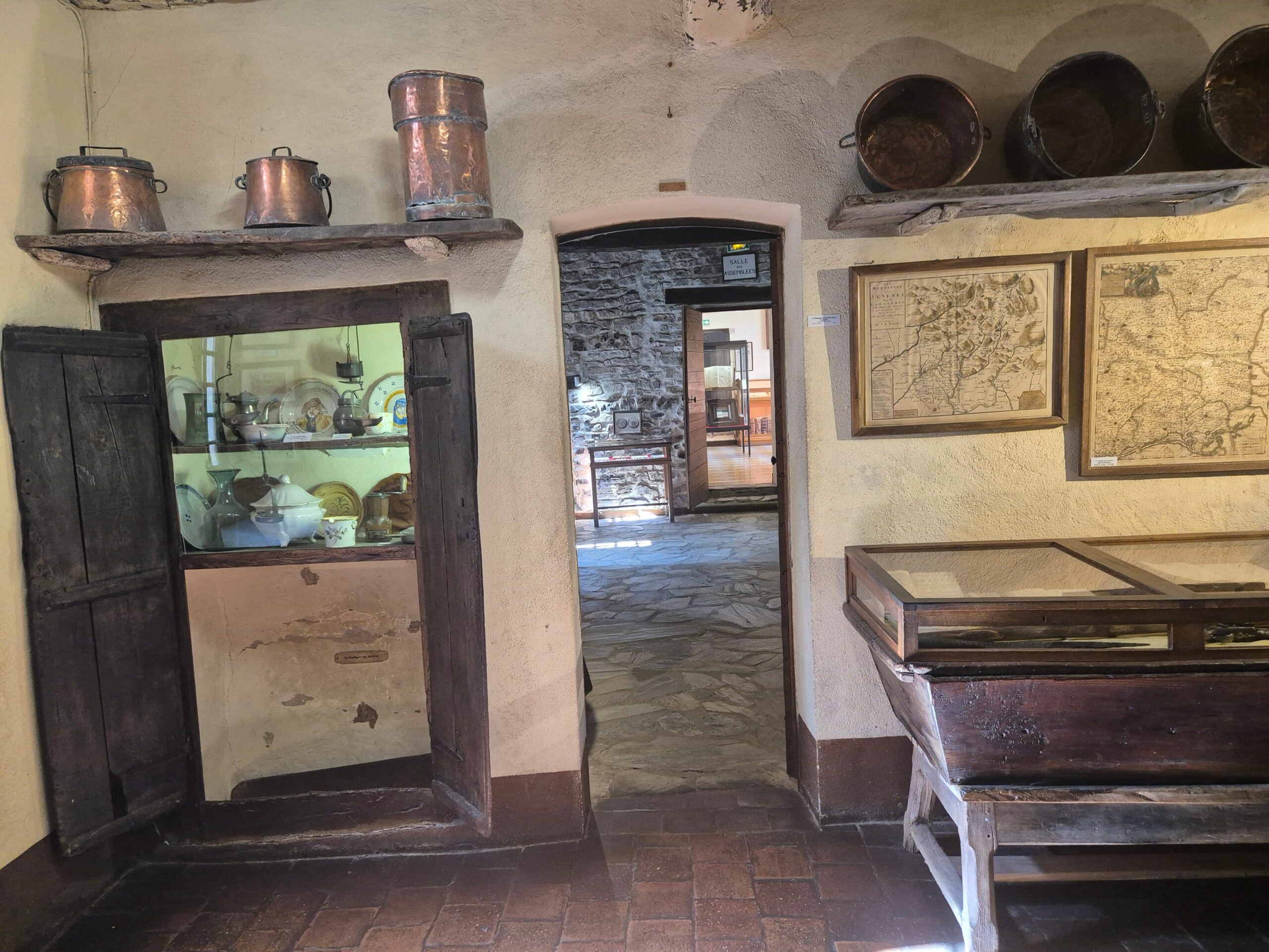 On y voit la structure d’une maison cévenole et objets de la vie locale à cette époque. La cache de Rolland se trouvait sous un plancher sur la photo 3, dans l’armoire.