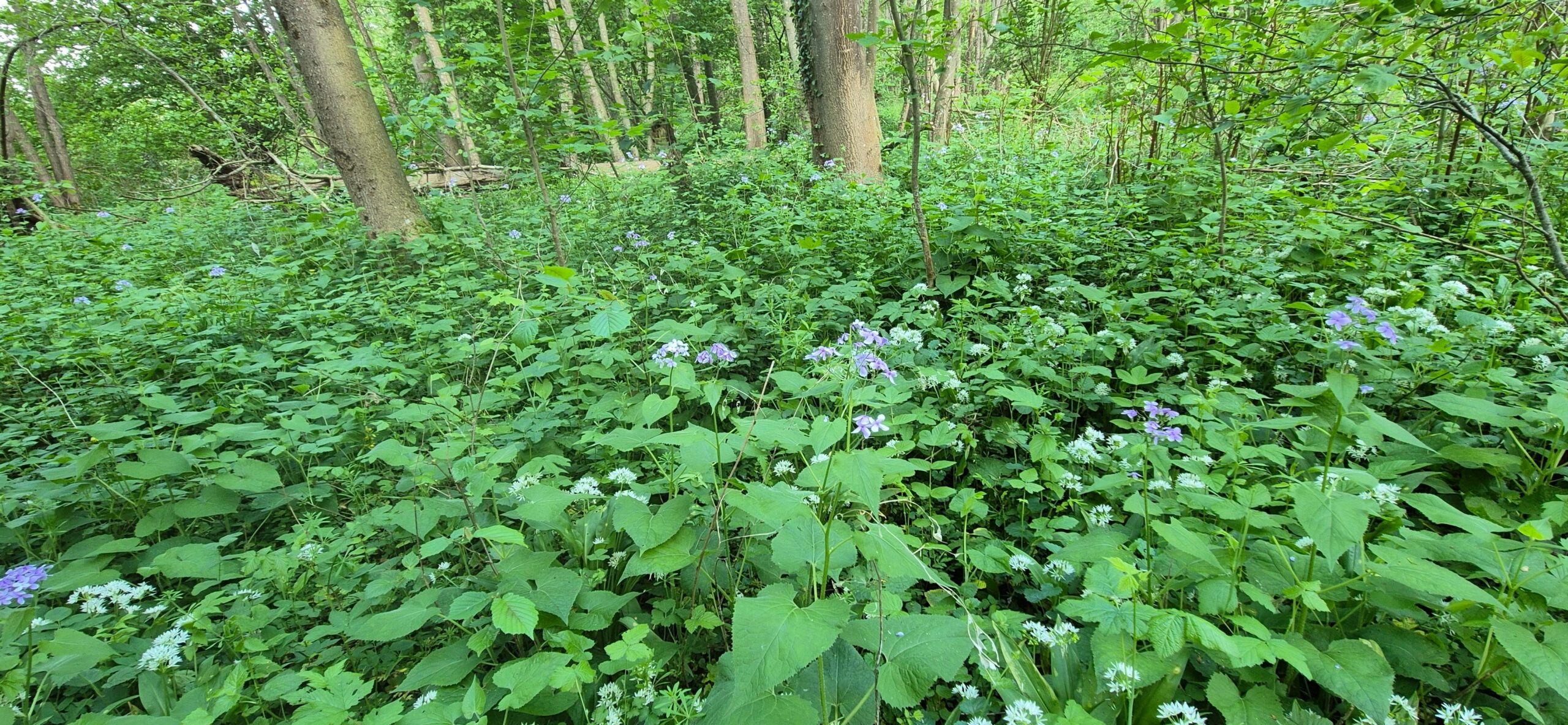Les plantes vernales disparaissent en fin de printemps, mais bien d’autres espèces herbacées perdurent toute la saison de végétation : Lamium galeobdolon, Glechoma hederacea, Stachys sylvatica, Aegopodium podagraria, Carex remota, Galium aparine ; Melandrym rubrum, Euphorbia amygdaloides, Urtica dioica, Lamium maculatum, Alliaria officinalis, Circaea lutetiana, Carex acutiformis, Geum urbanum, Stellaria holostea.