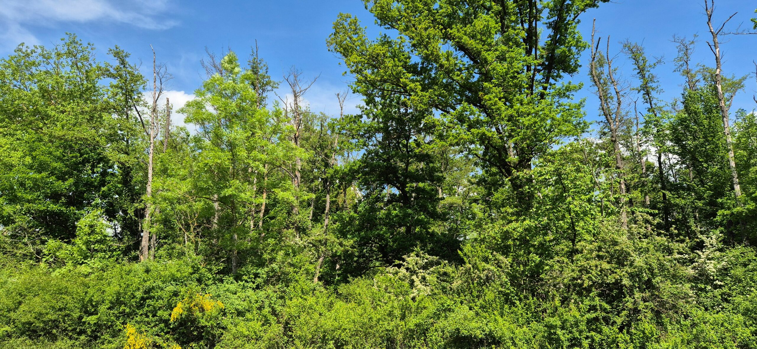 Oberallmend correspond une chênaie à orme et une aulnaie à frêne. Ces deux formations forestières sont bien abimées par les coupes, notamment l’aulnaie, dont plusieurs arbres sont morts. C’est bien dommage, notammnet pour la chênaie, car il s’agit ici du seul témoignage de ce type de forêt de toute la plaine de la Bruche.