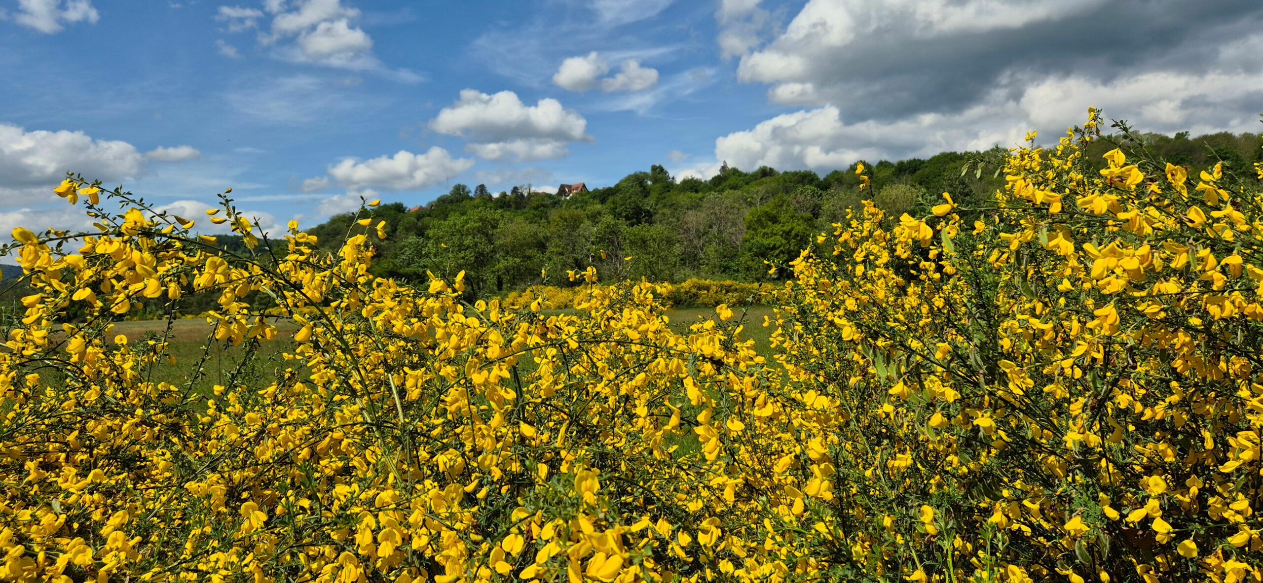 Ce n’est qu’à cette partie de la plaine qu’apparait le genêt qui s’épanouit autour de la forêt d’Oberallmend (photo 1 et 2). Les prairies sont également de toute beauté. Les petits chênes y sont nombreux, et pourraient former de belles chênaies si on laissait évoluer la prairie vers la forêt.