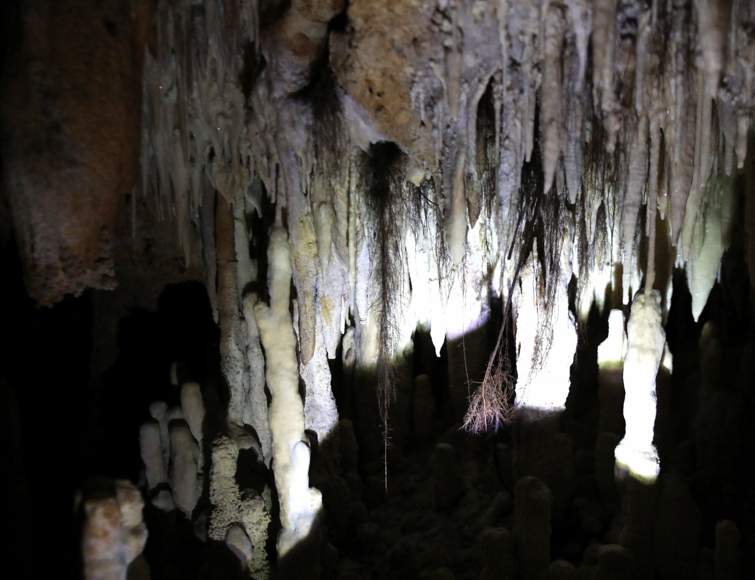 Les racines pénètrent profondément dans la grotte à la recherche d’eau et de sels minéraux. La plupart de ces racines sont vivantes.
