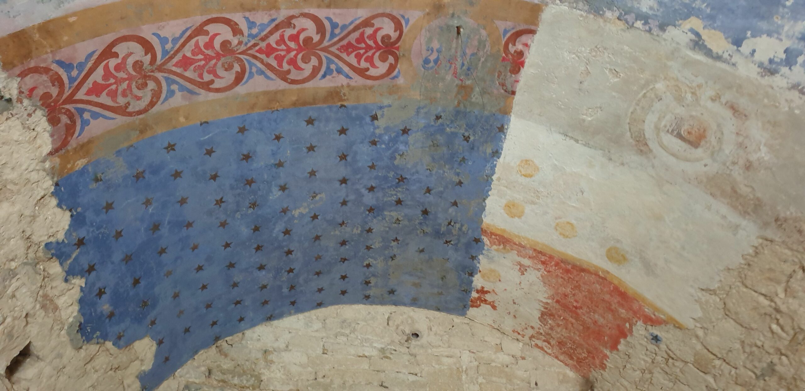Ci dessous : l’ancien ermitage, sous le rocher, qui comporte deux pièces. A l’entrée de la pièce du fond, dans la chambre cellule, cette peinture ancienne représentant un ange.