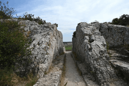 Les Romains édifient un aqueduc amenant l’eau des Alpilles à Arles, ainsi qu’une meunerie, composée d’une série de moulins installés sur la colline de la Pène (photo 1, prise au Musée d’Arles). Il en reste des vestiges (photo 2)
