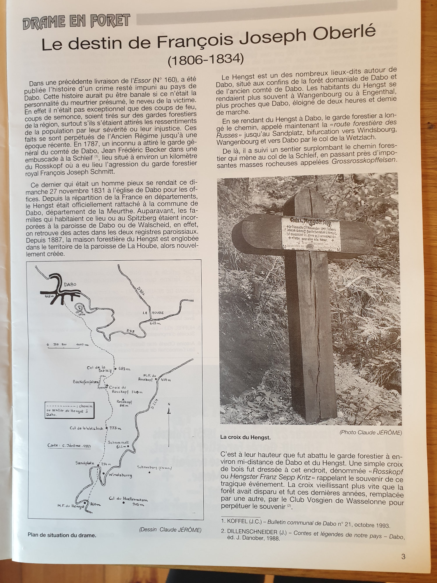 Cette croix se situe en forêt domaniale de Dabo. L’histoire de cette croix est bien connue grâce à un texte paru dans la revue Essor, et son entretien par le Club vosgien. Sur la croix, on apprend que le garde forestier du Hengst, chaume située au-dessus de Windsbourg en forêt domaniale de Dabo, a été assassiné le 27 novembre 1831 par un coup de feu en allant à la messe, à pied, à Dabo. Cette croix a été entretenue par le Club vosgien de Wasselonne.