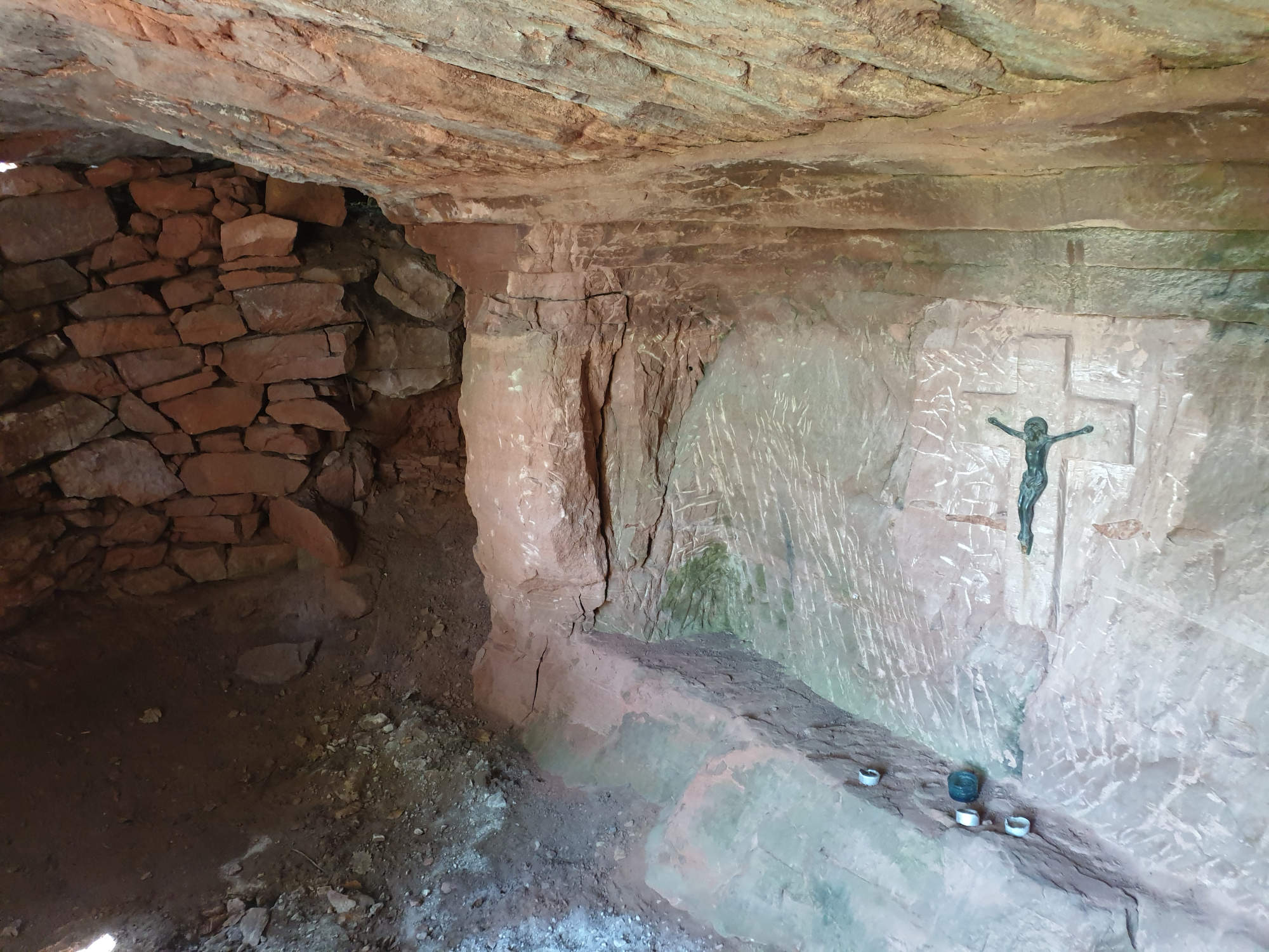 La croix se situe dans la grotte du Herrenfels, en forêt domaniale de Dabo. Au cours de la Révolution française, un curé réfractaire y lisait des messes.