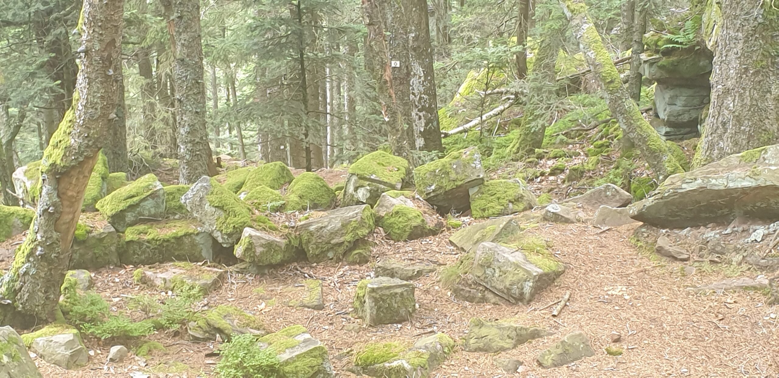 Sous ce replat, et ce jusqu’au sentier plus bas, subsiste une belle forêt de hêtraie sapinière sur éboulis, comprenant de magnifiques exemplaires.