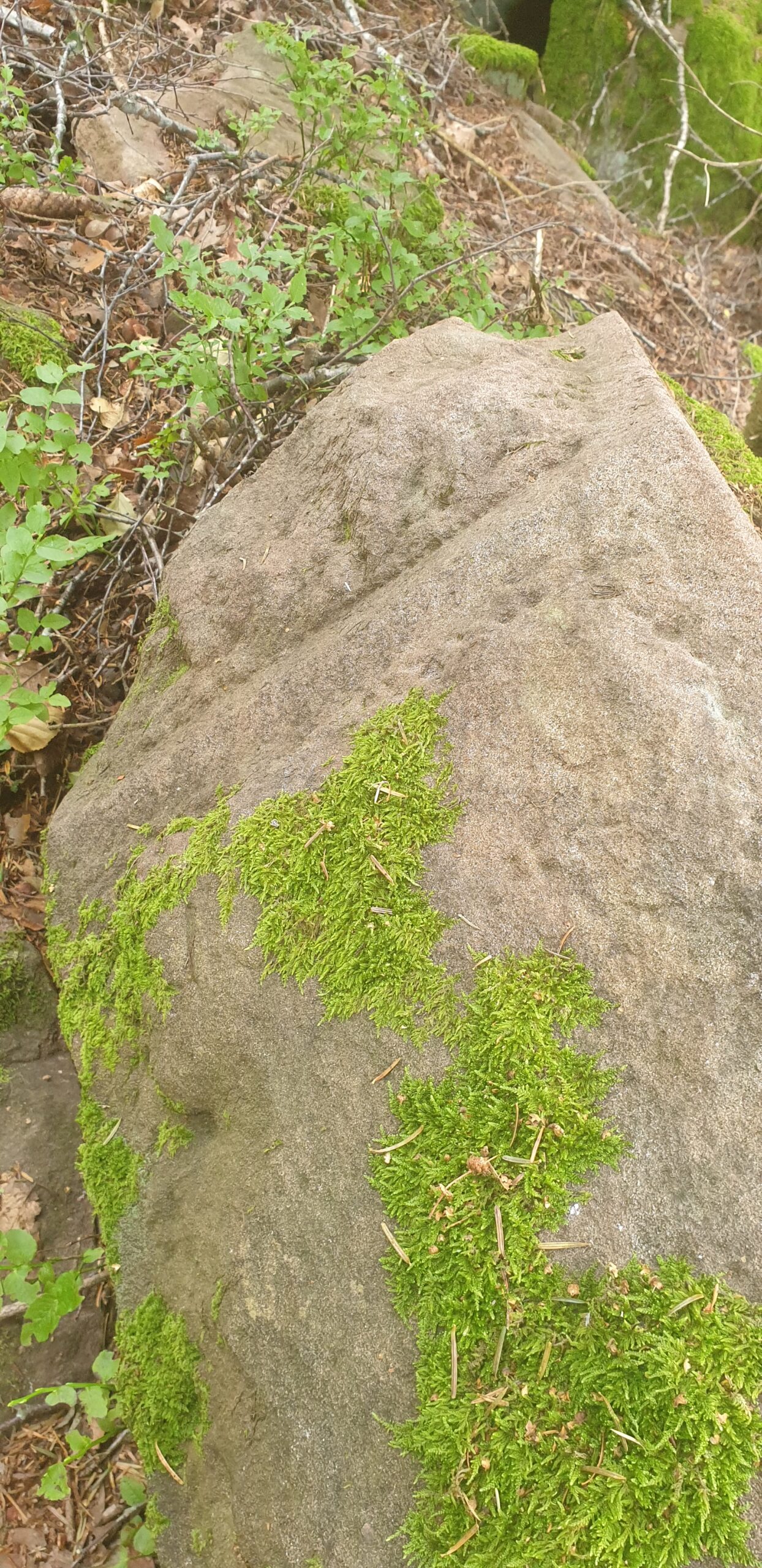 À ses pieds, à l’entrée du sentier vers le Jardin des Fées, gît une pierre oblongue avec une belle cupule cylindrique assez régulière. Peu après, nous pouvons apercevoir la Grande côte avec à son sommet le Jardin des Fées, but de notre visite.