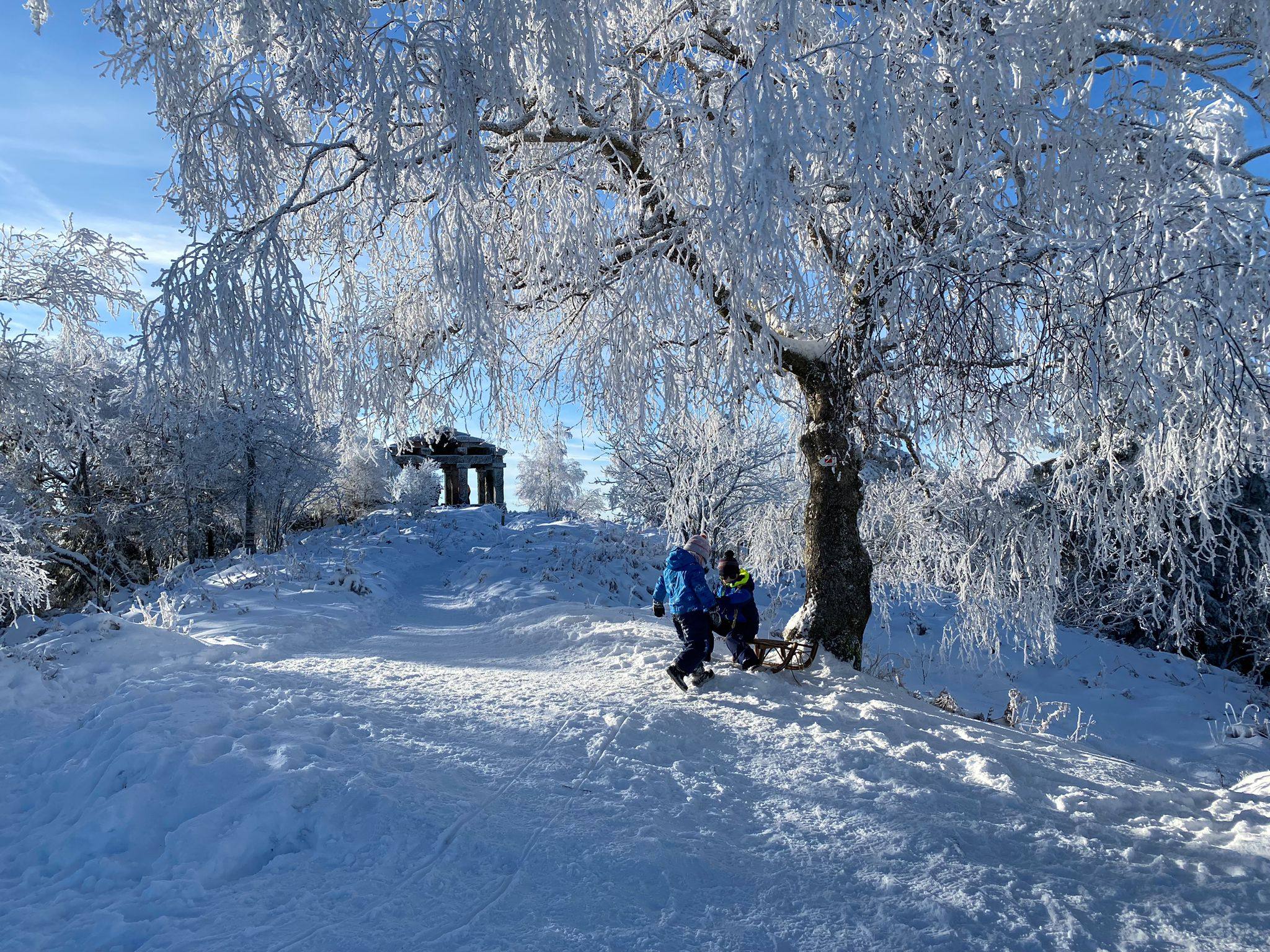 Un grand merci à Jean Marie Holderbach pour ses explications sur l’histoire des deux Donon, ainsi que les documents qu’il a mis à ma disposition. Et également à Damien Saraceni pour la relecture du texte. Merci également à Anne Herz pour ses photos du Donon en hiver.