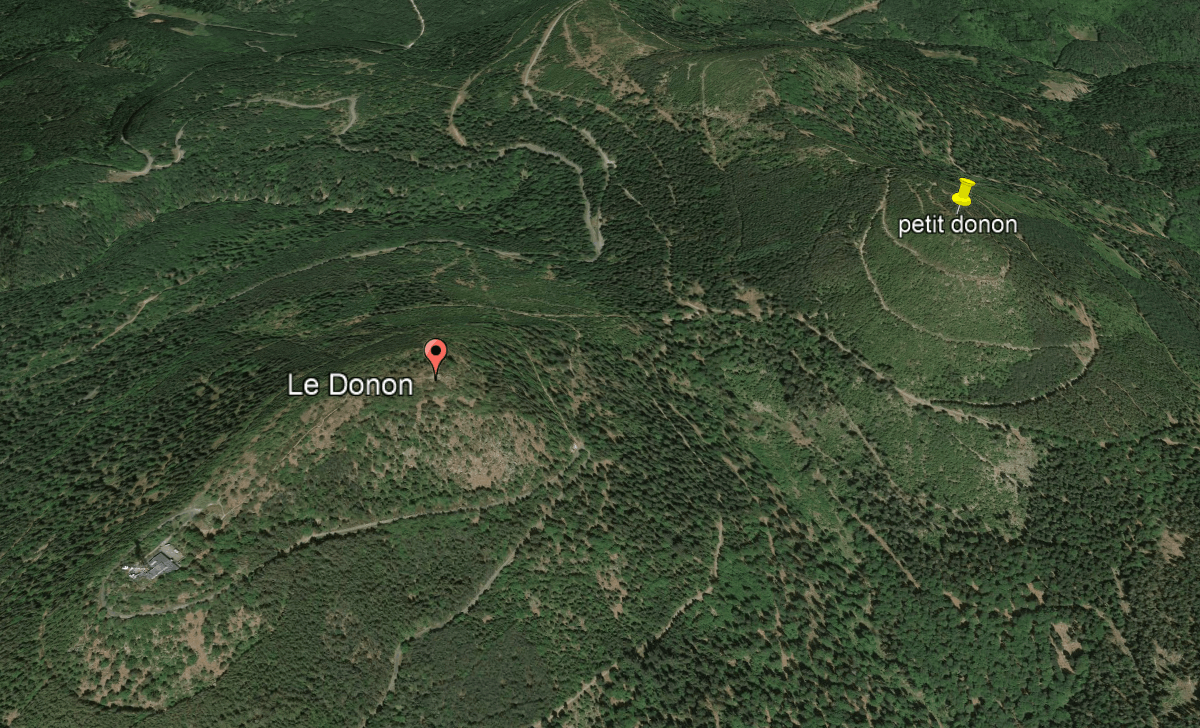 Ci-dessous: deux photos aériennes du Grand et Petit Donon. La photo 3 à droite montre le Petit Donon prise à partir du col forestier dénomé « Entre les deux Donon ».
