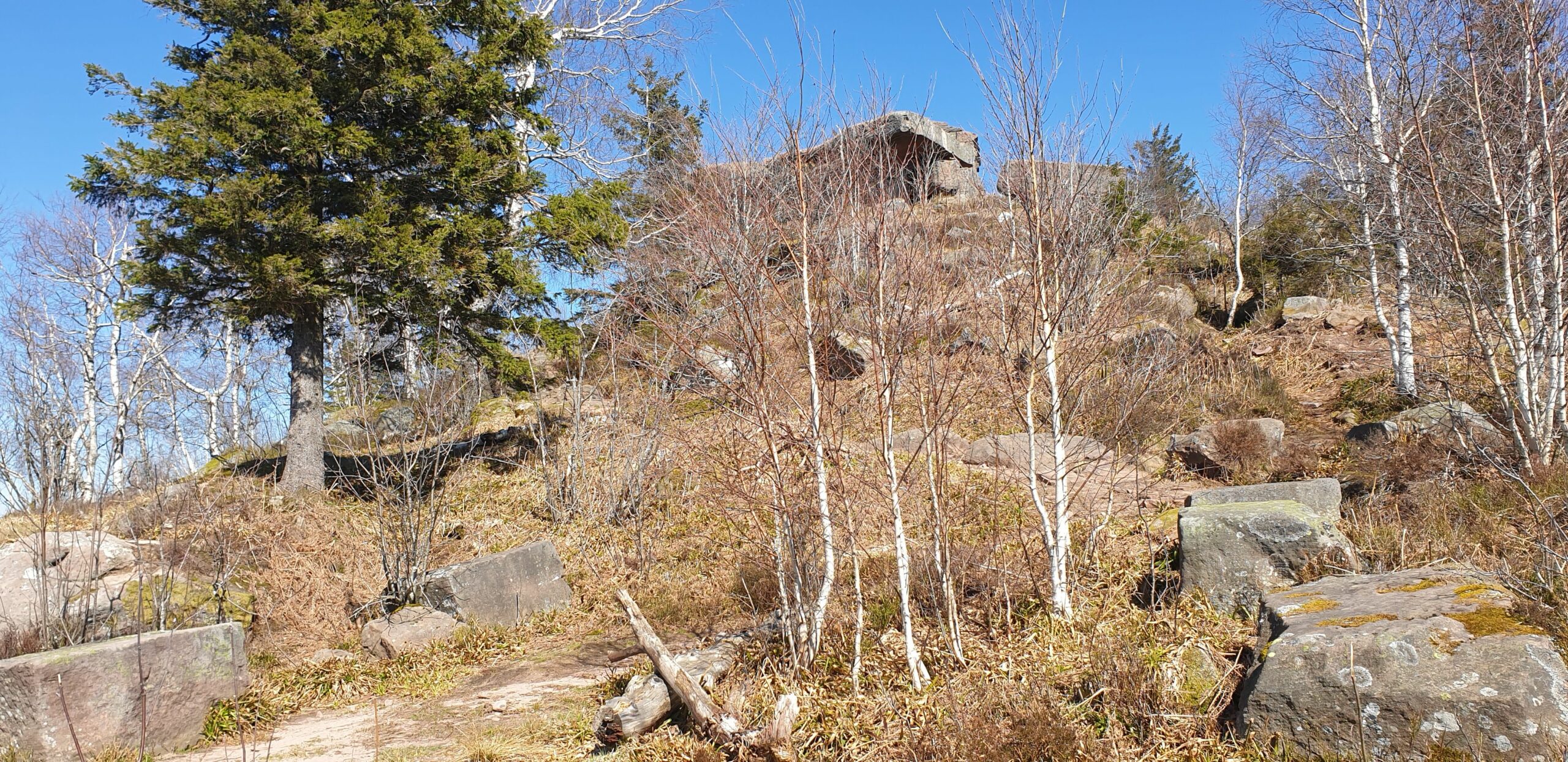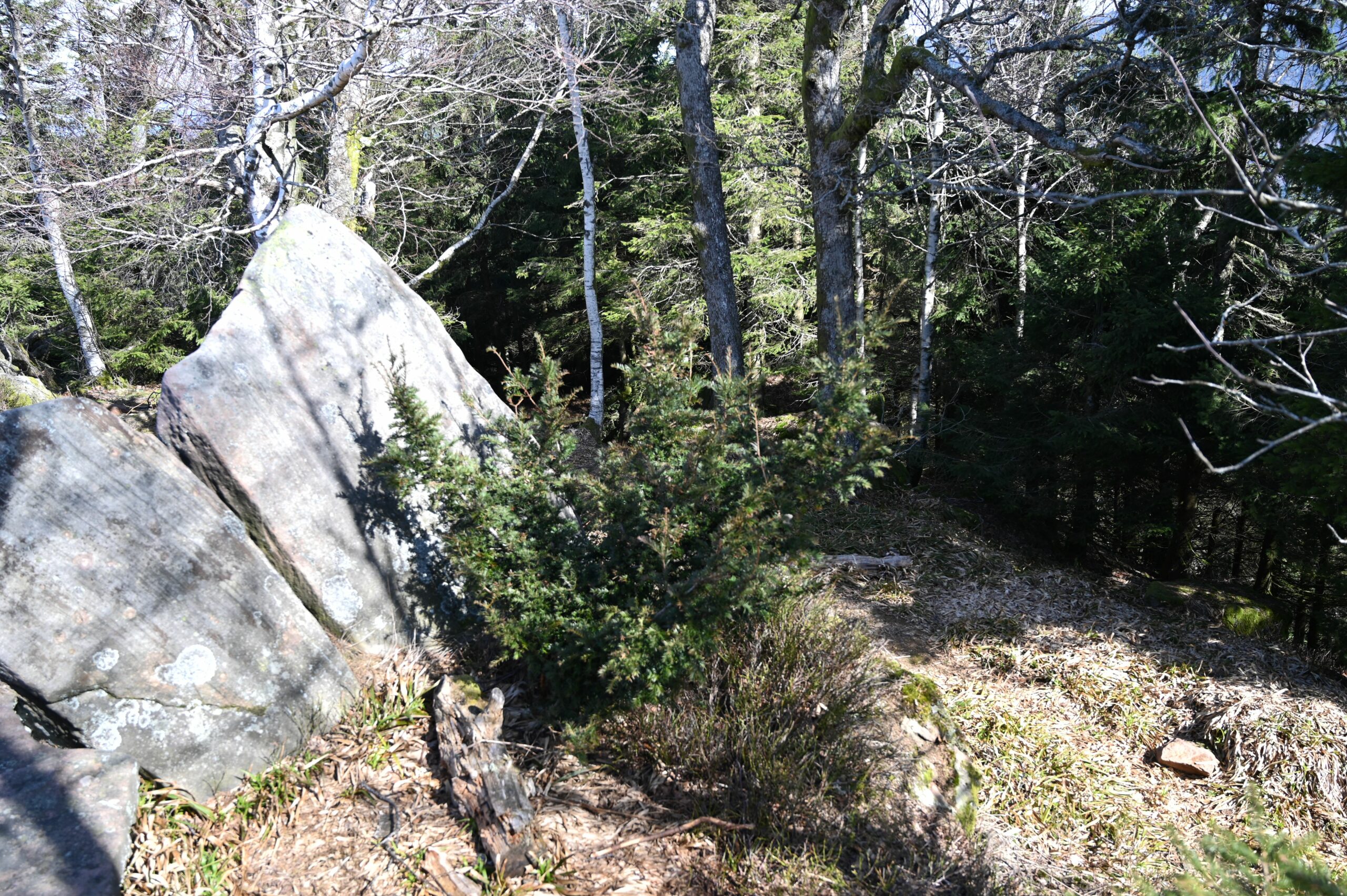 - photo 3: rocher sommital avec temple du XIXe siècle, recolonisation forestière sous le sommet du Donon, à l’intérieur de l’enceinte protohistorique.