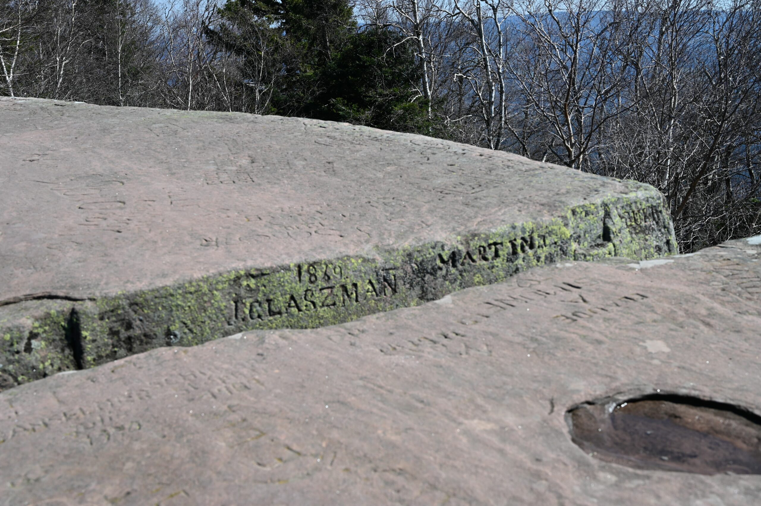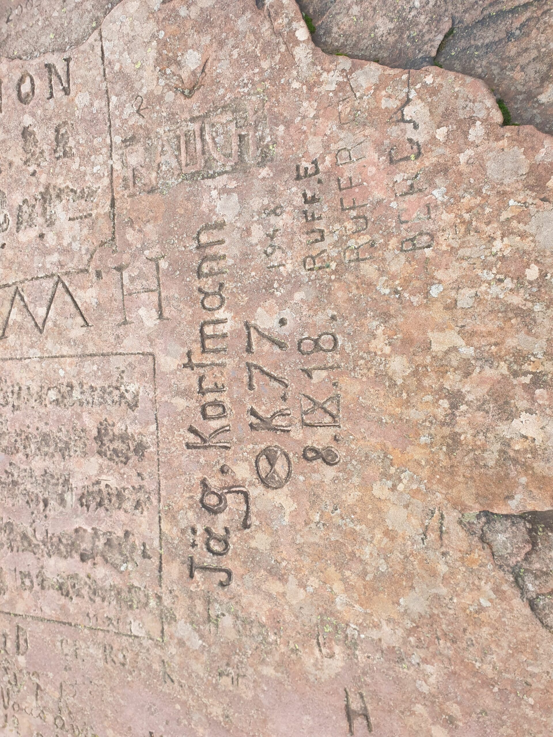 Bien des gravures sont gravées sur la plate-forme sommitale du Grand Donon, datant de différentes époques.