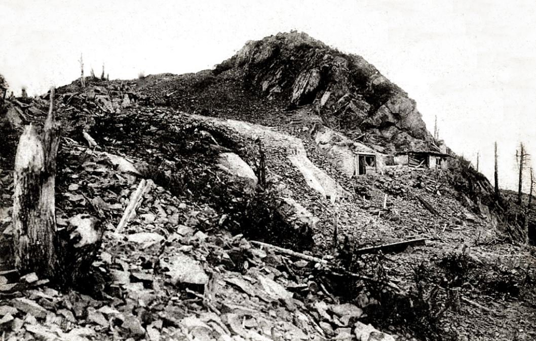 Ci-dessous : l’aspect du sommet de cette montagne après les principaux combats durant l’année 1915, faisant près de vingt-cinq mille morts.