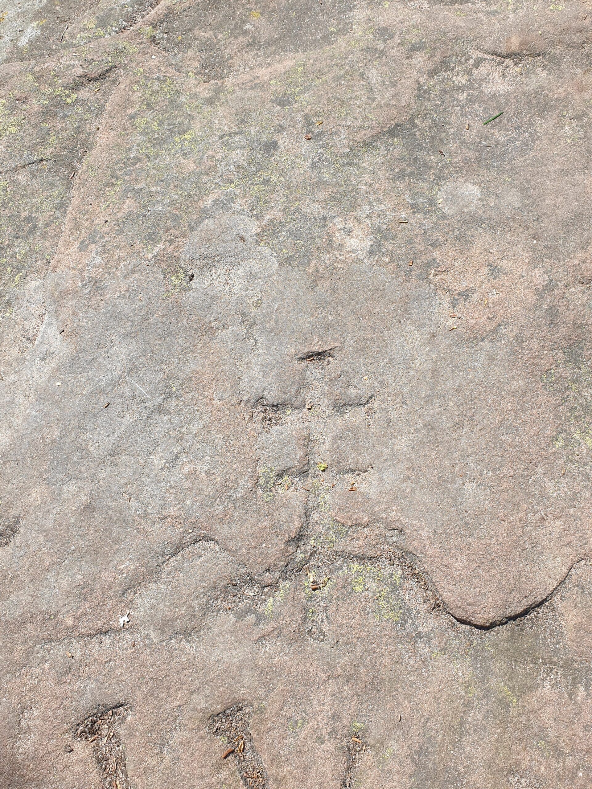 Ci-dessous : deux photos (internet) d’ une figure gravée sous le sommet, qui pourrait être d’origine gallo-romaine, mais remaniée par les soldats au XXe siècle (??). Je ne l’ai pas retrouvée sur le terrain Sur la photo 3, on voit qu’ un if a été planté au pied d’un des rochers sommitaux pour des raisons inconnues : symbole funéraire, devant l’horreur de cette hécatombe du XXe siècle ? Hommage à la victoire française ?