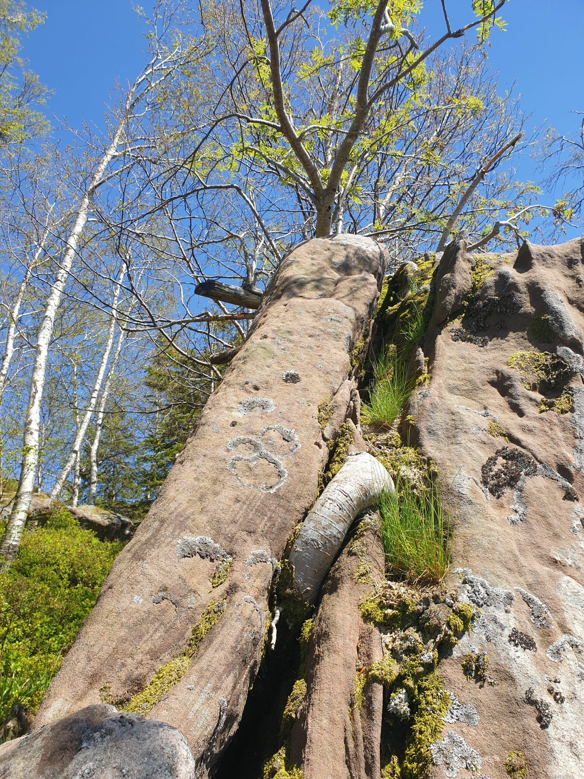 Photo 1: un pin; photos 2 et 3 un sorbie. Ces espèces excellent à coloniser les rochers, en faisant pousser leurs racines dans les fissures. Le sorbier de la photo 3 est particulièrement impressionnant par la taille