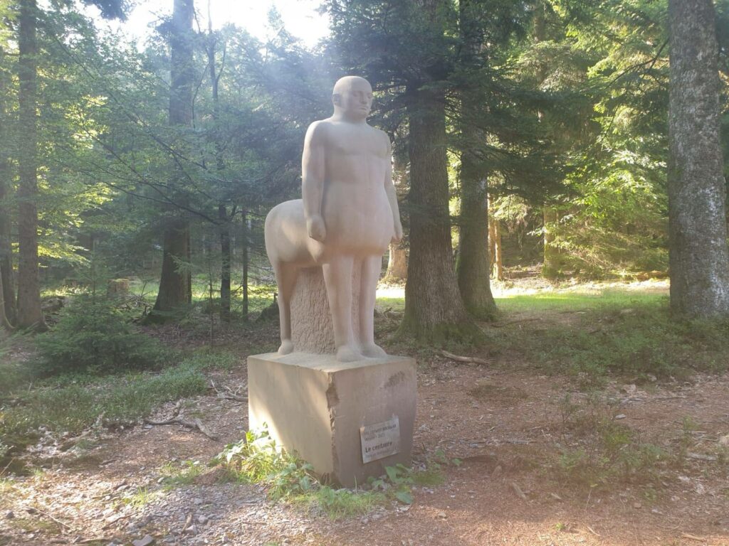 Il est frappant de constater à quel point ces deux montagnes ont été des symboles de conflit et de malheur, et ce jusqu’à nos jours. Une visite que j’ai faite au Struthof m’a rendue attentive au fait que de cet ancien camp de concentration nazi, était situé dans le prolongement direct de ces deux sommets. Une autre visite, faite autour du sommet du petit Dononvers l’Est, au pied du Kohlberg, m’a fait découvrir avec surprise une sculpture représentant le centaure, discrètement posée dans la forêt par un artiste ukrainien.