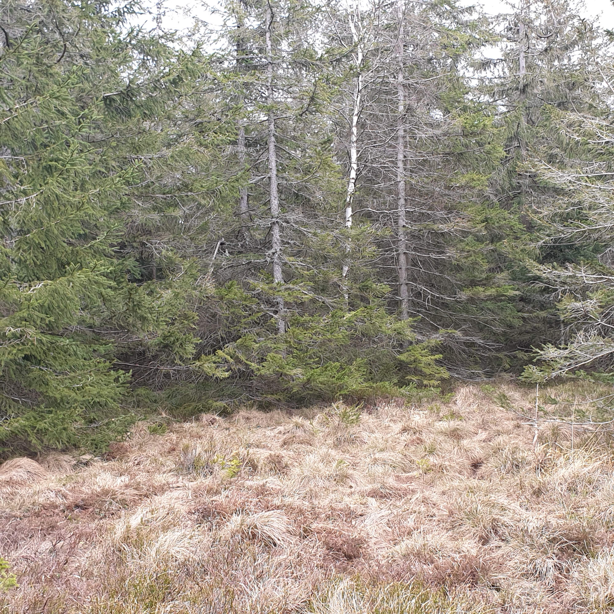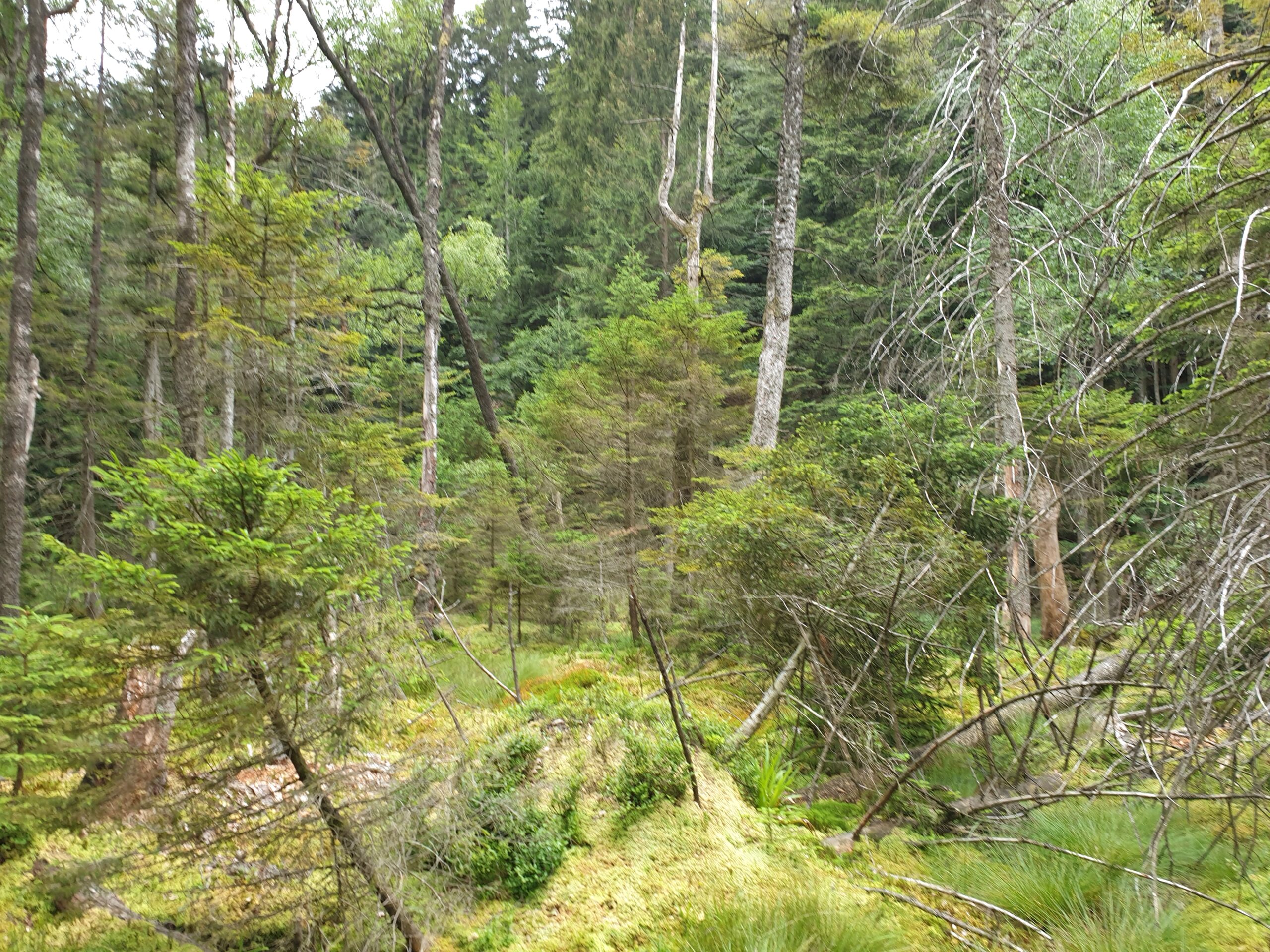 C’est la tourbière la plus boisée de toutes, dominée par l’épicéa, favorisé par les plantations tout autour, et le bouleau pubescent. Les herbacées apparaissent sur les bords (sans doute déboisés). La profondeur de la tourbe est de 2m70 selon un sondage effectué par l’Université de Franche Comté.