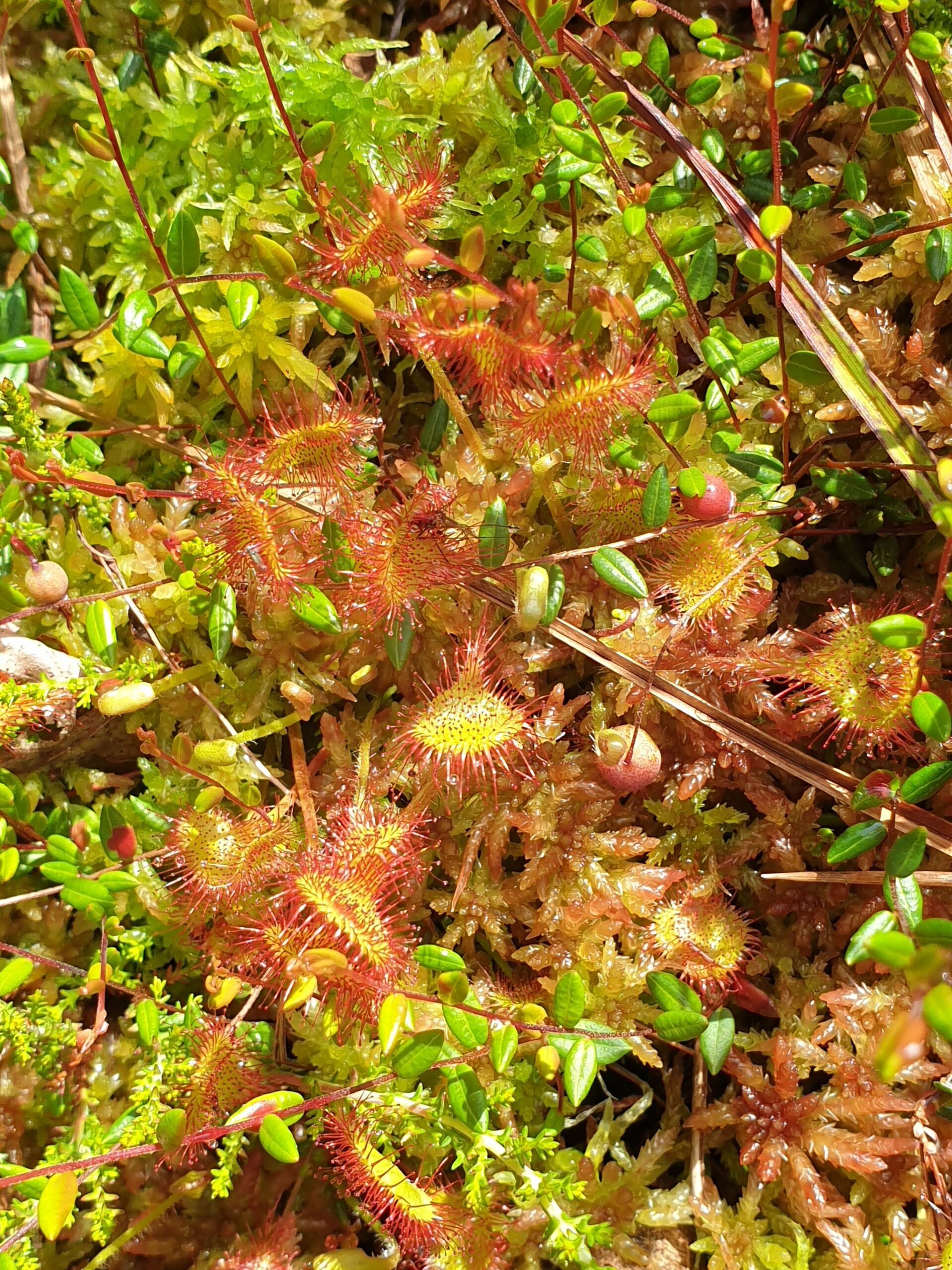 Les mois d’hiver jusqu’en juin ont été très humides, ce qui a permis de remplir d’eau toute la tourbière. Et j’ai pu retrouver quelques beaux peuplements de drosera !
