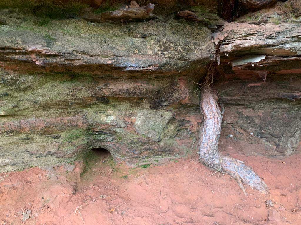 Ci-dessous: racines émergeant d’un rocher haut de plus de 30 m !
