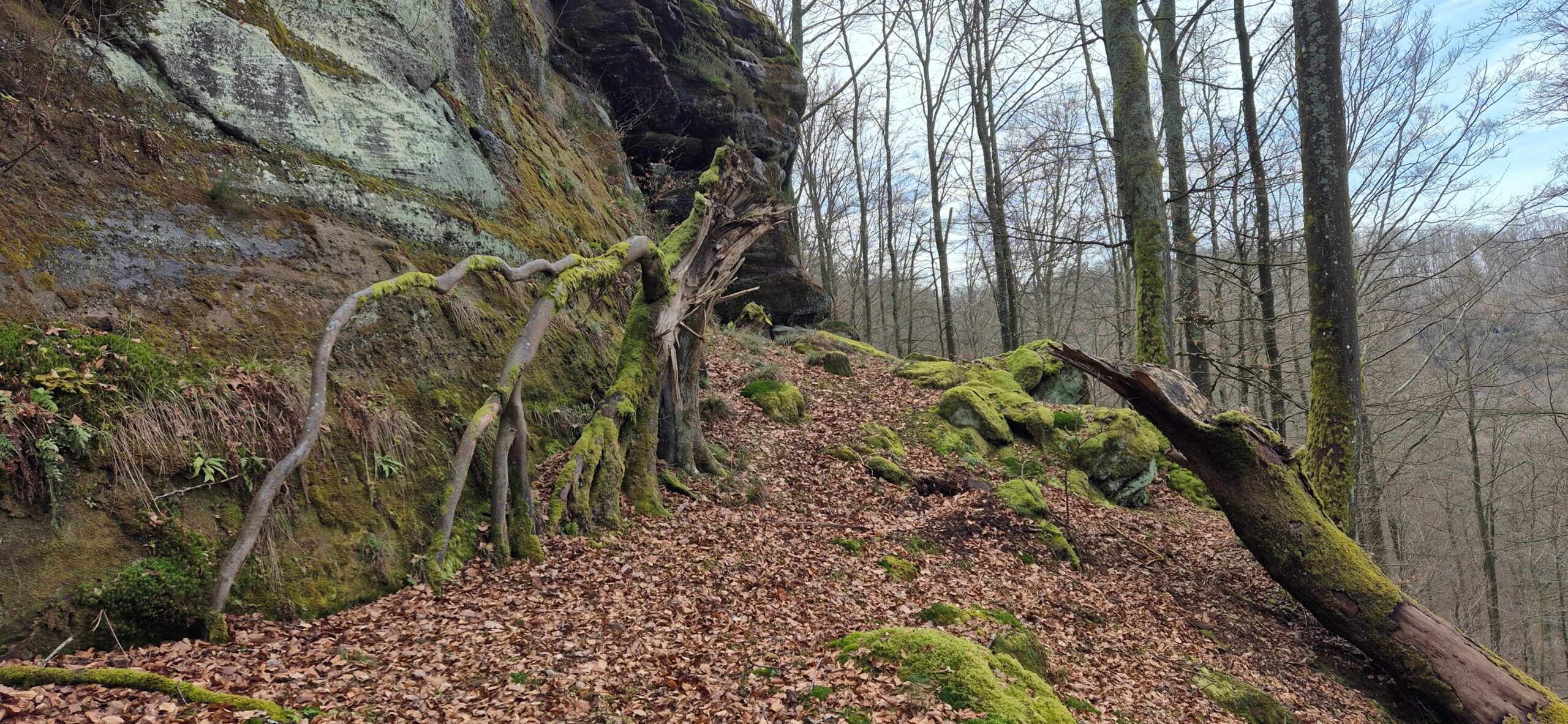 Ci-dessous: photos 1 et 2 les falaises du Stampfthal sont riches en bois tombé, après 40 ans de libre évolution