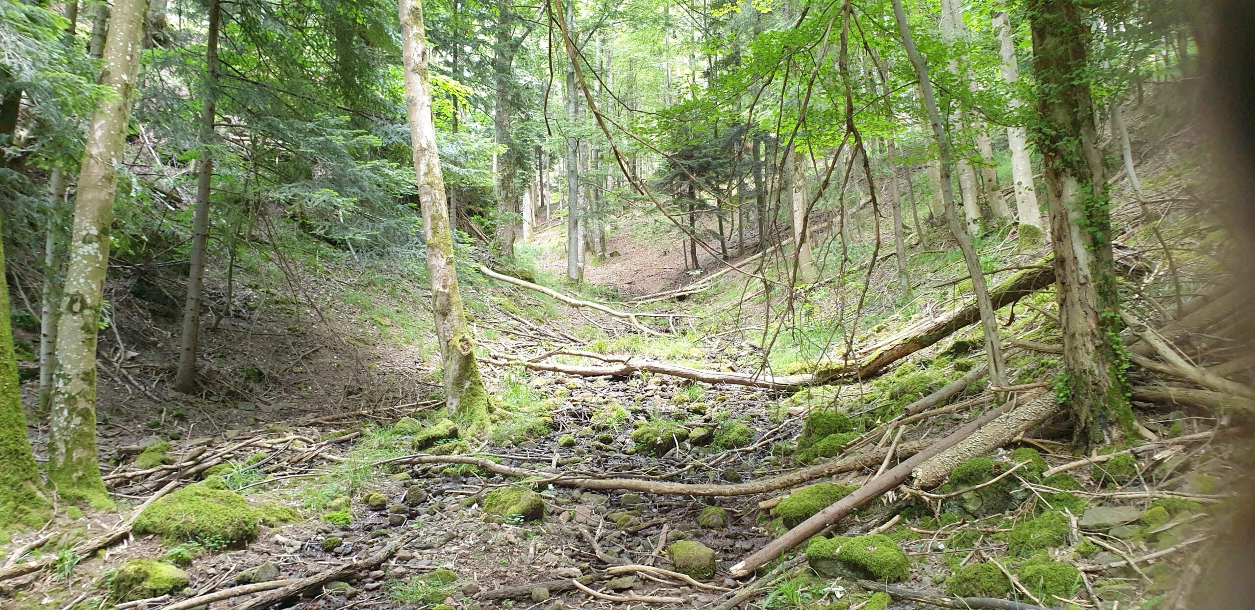 MAIS Il n’en reste pas moins que la gestion forestière actuelle est plus que criticable autour du vallon protégé, et ce depuis des décennies. Certes, les coupes rases ont disparu, mais les pratiques qui ont suivi ce triste événement n’ont pas été meilleures autour de la partie protégé: plantations d’épicas, coupes trop importantes sur des pentes fragiles. Actuellement, ces plantations succombent aux périodes de sécheresse : les coupes toujours trop larges, trop accélèrent la dessication des sols, déjà sensibles à ce processus par la nature du substrat, alors qu’il faudrait bien au contraire laisser la canopée se refermer afin de conserver l’humidité des sous-bois !