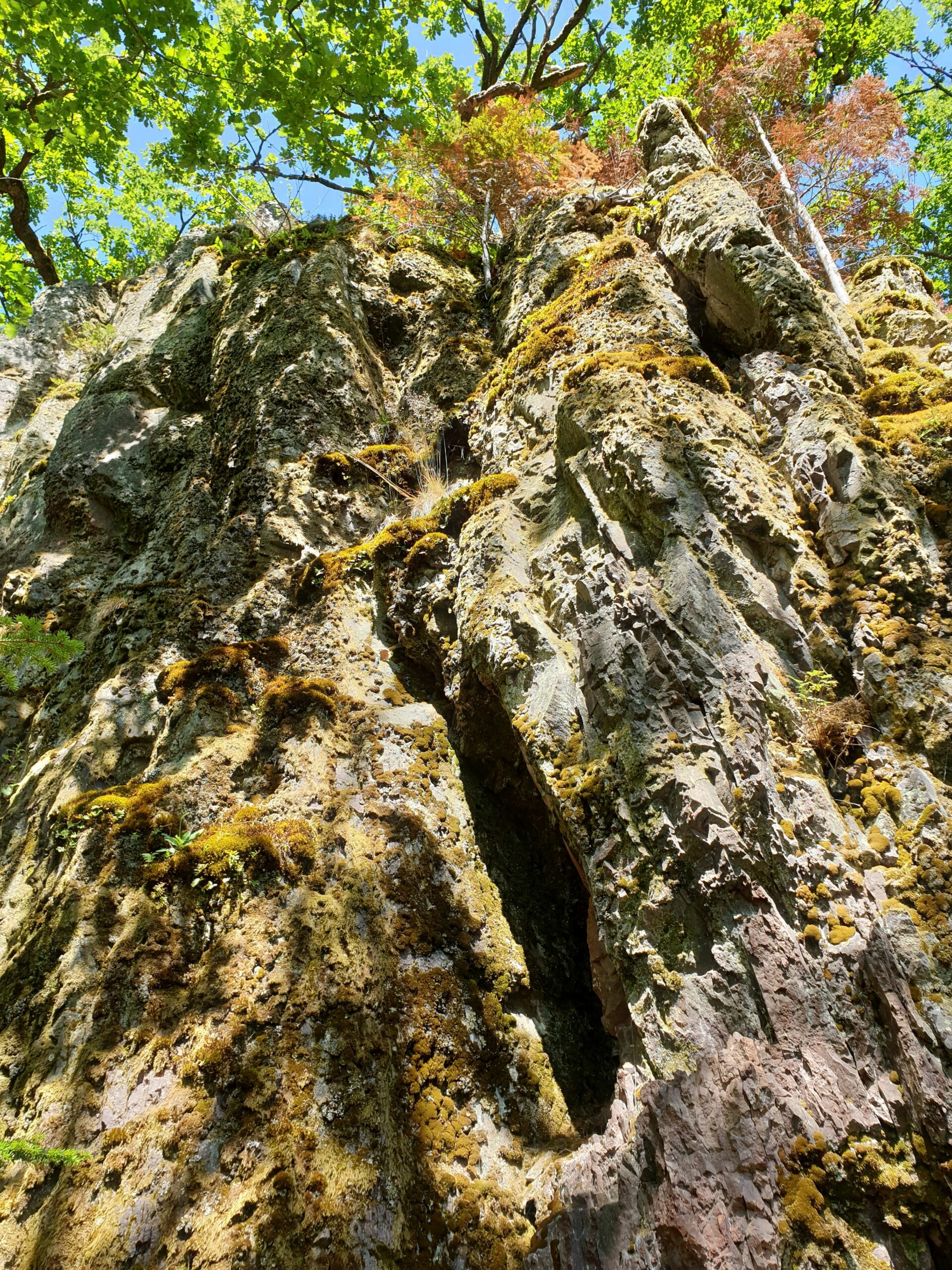 La Dent du Troll: un piton rocheux de rhyolite sur les falaises dominant la vallée du Nideckthal. Photo Romain Saintot