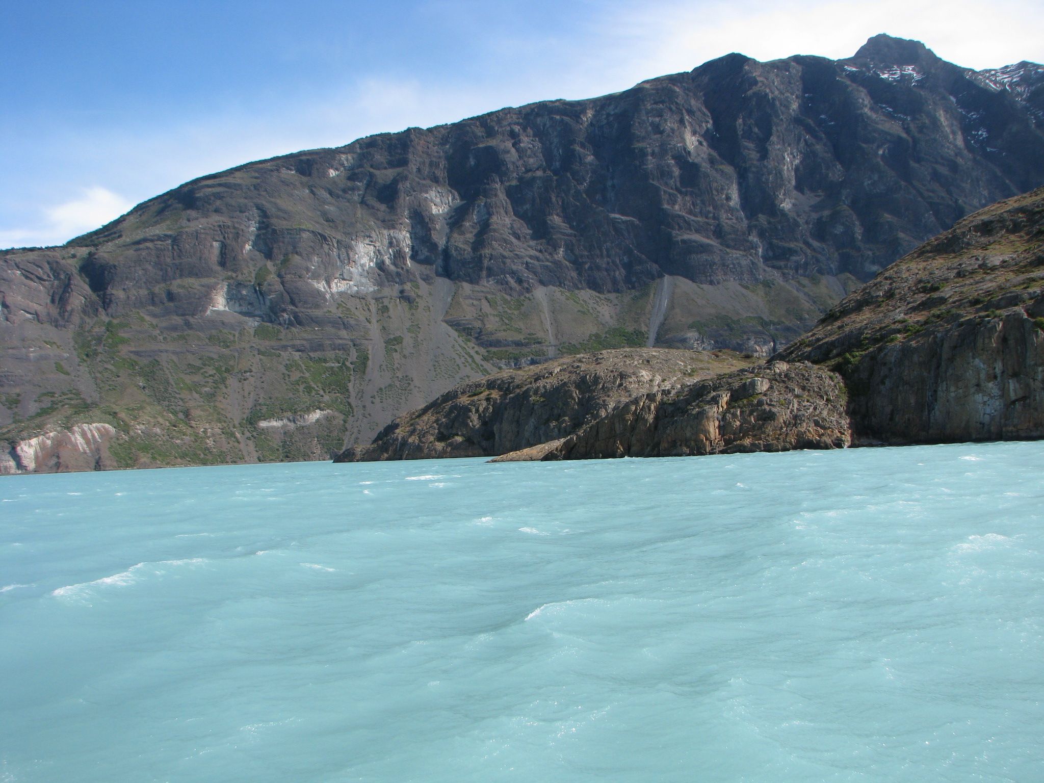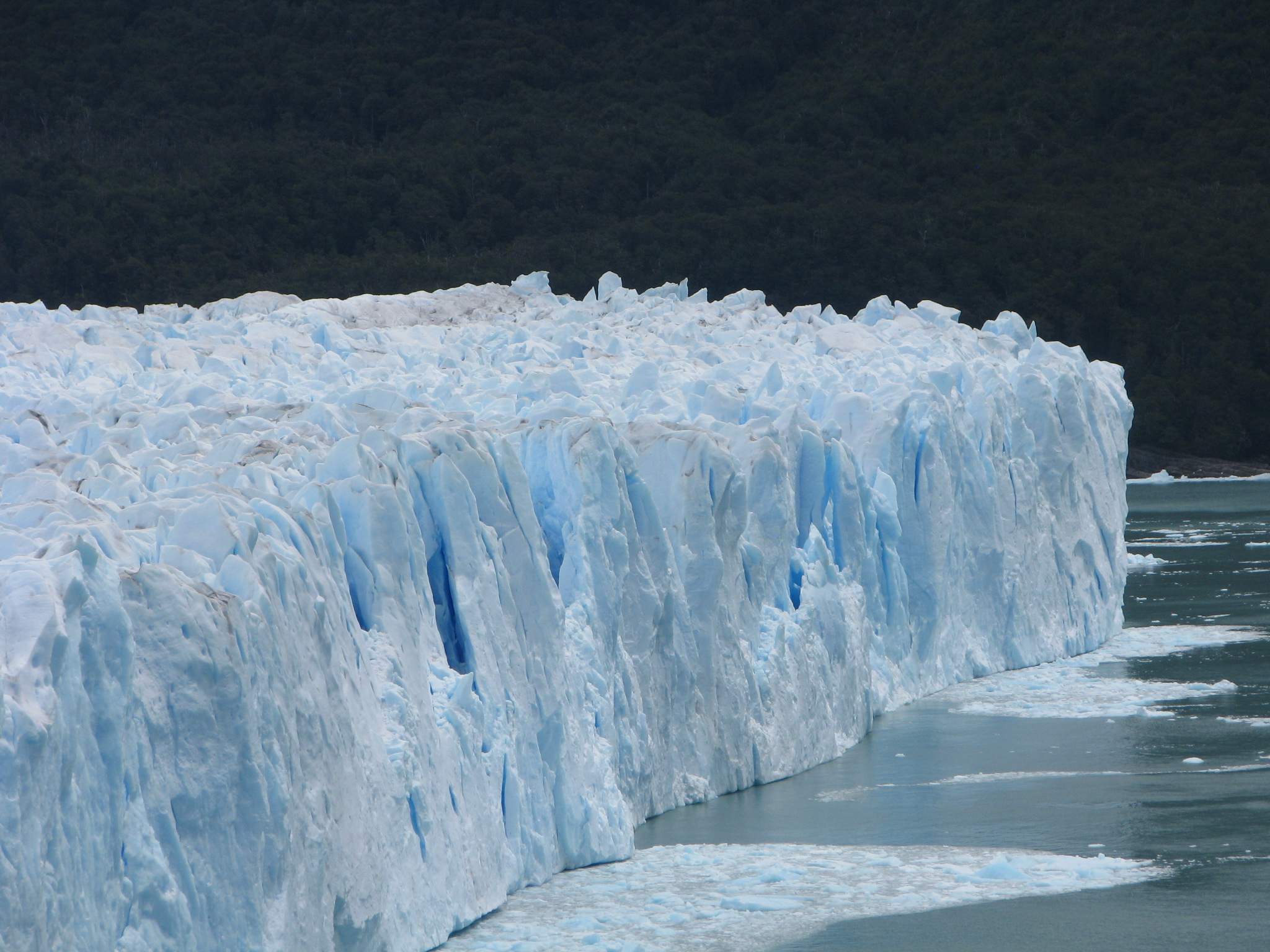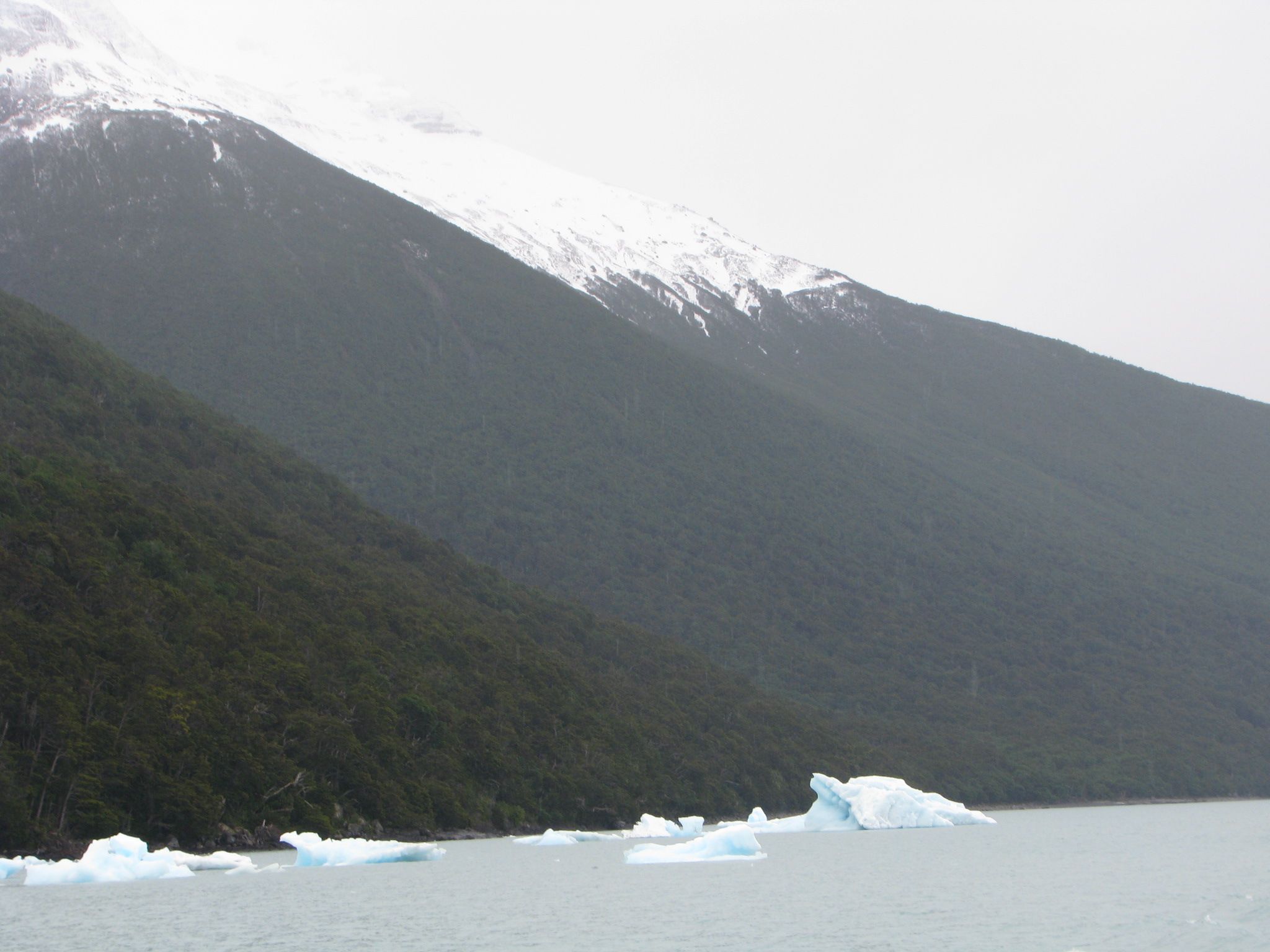 Le glacier d’Upsala, atteint après une heure de bus dans des paysages semi-arides, évolue dans une large vallée totalement boisée de hêtres austraux, qui descendent jusqu’au niveau de l’eau. Nous prenons un bateau pour s’en approcher de près