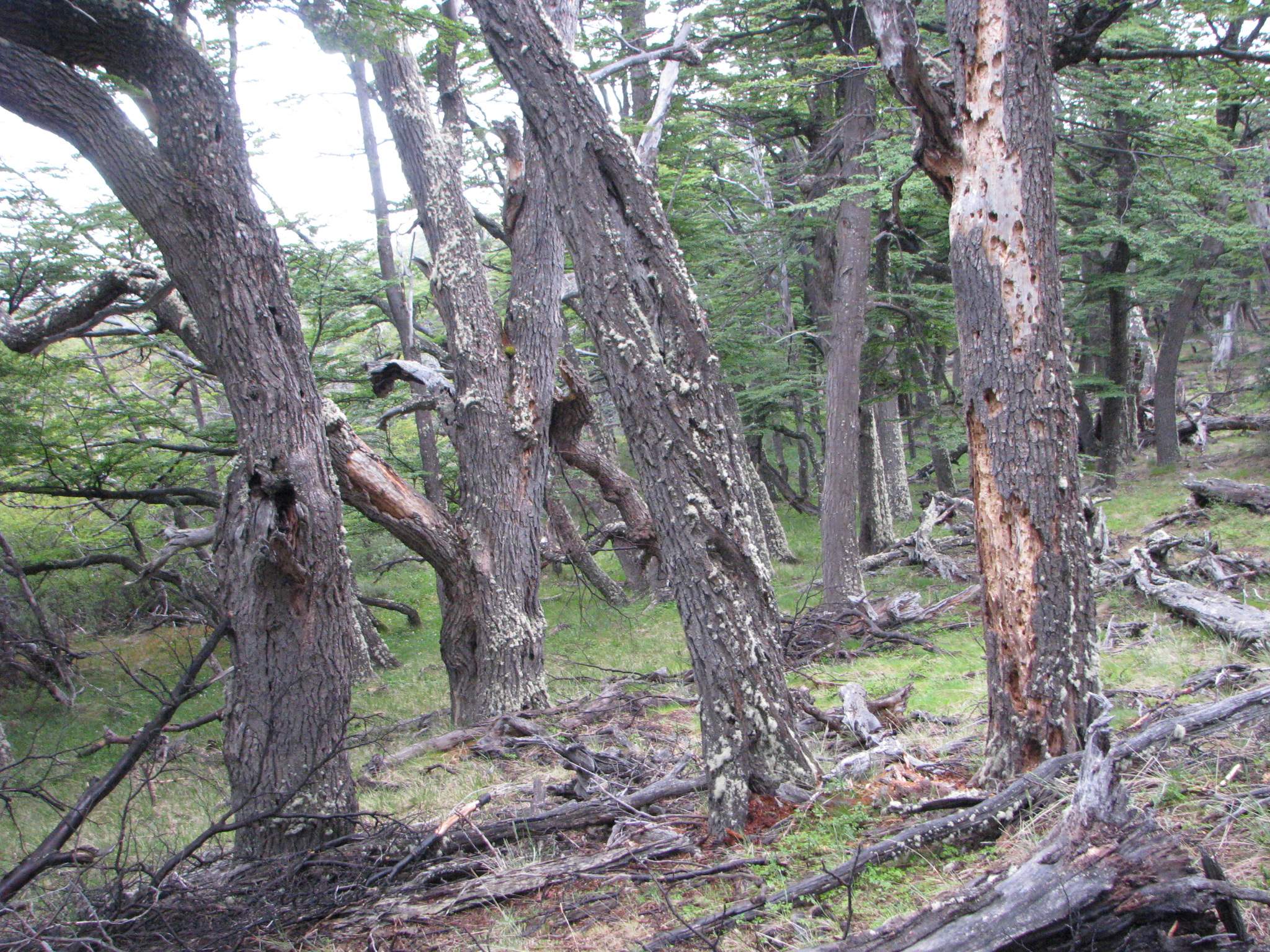 L’aspect des forêts change avec l’altitude et l’exposition au vent. Vers le FitzRoy, les arbres sont tordus, petits, et perdent leurs feuilles dans la canopée. L’ouverture des forêts par les sentiers ou la pâture les fragilisent aussi sans doute.