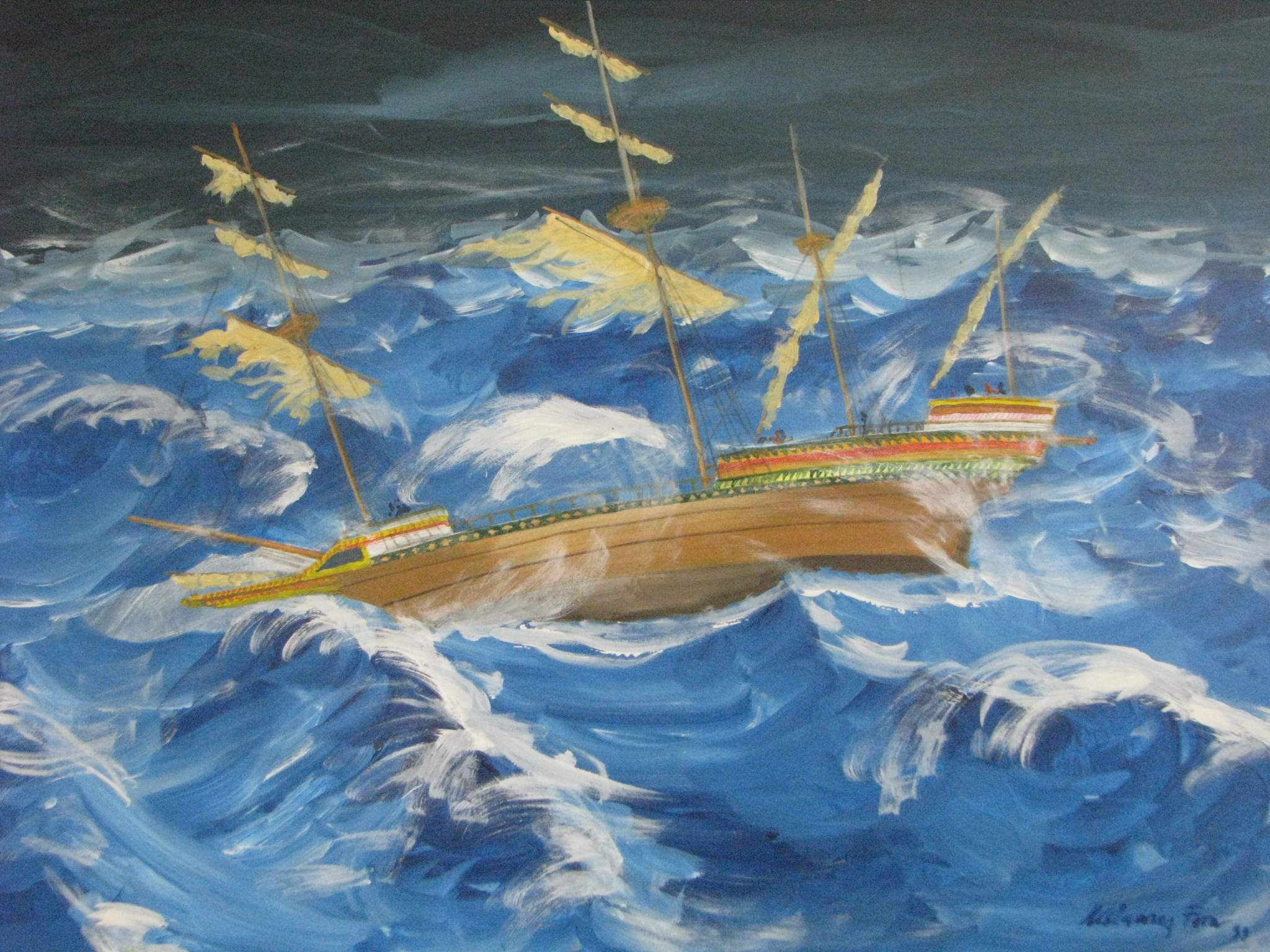 Des peintures soulignent la dangerosité du canal de Beagle. Le célèbre bateau de Fitz Roy y est aussi représenté.