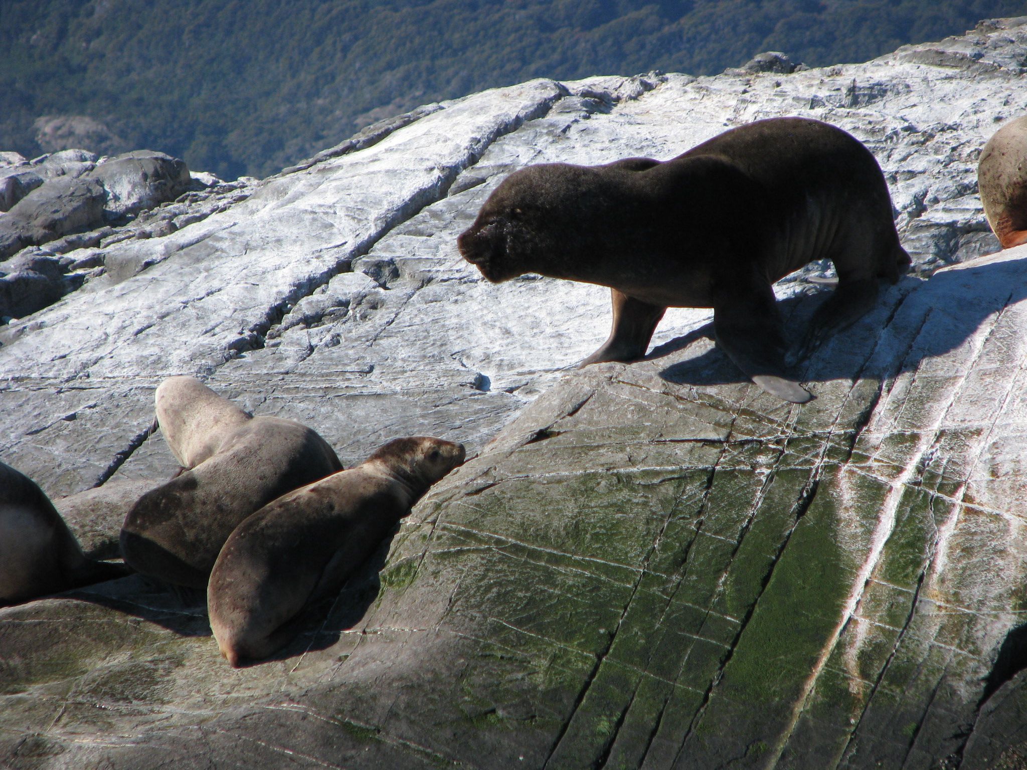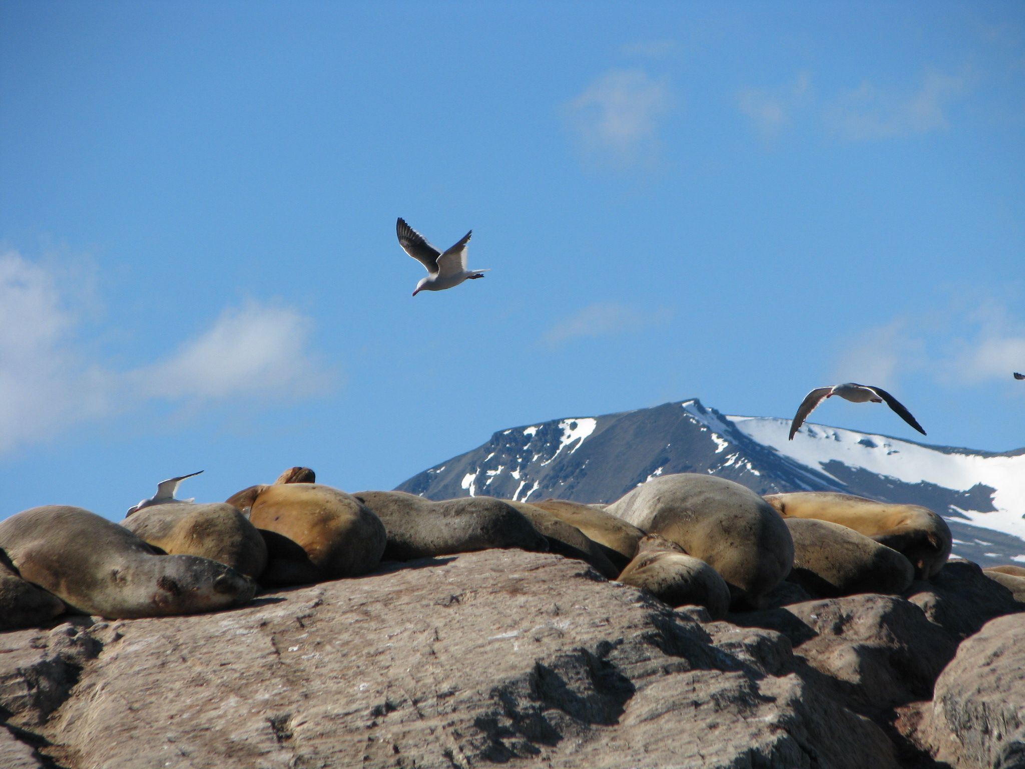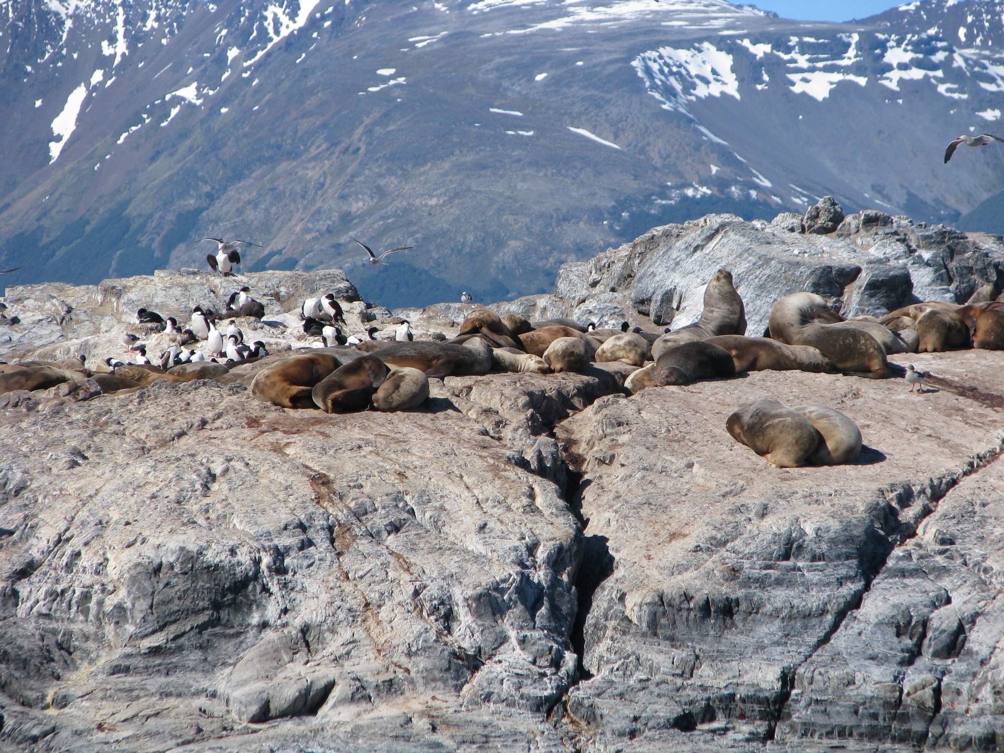 Nous avons visité en bateau les îles au large d’Ushuaia dans le canal de Beagle. Une île, baptisée ïle aux lions est le lieu de repos des lions de mer (Otaria byronia).