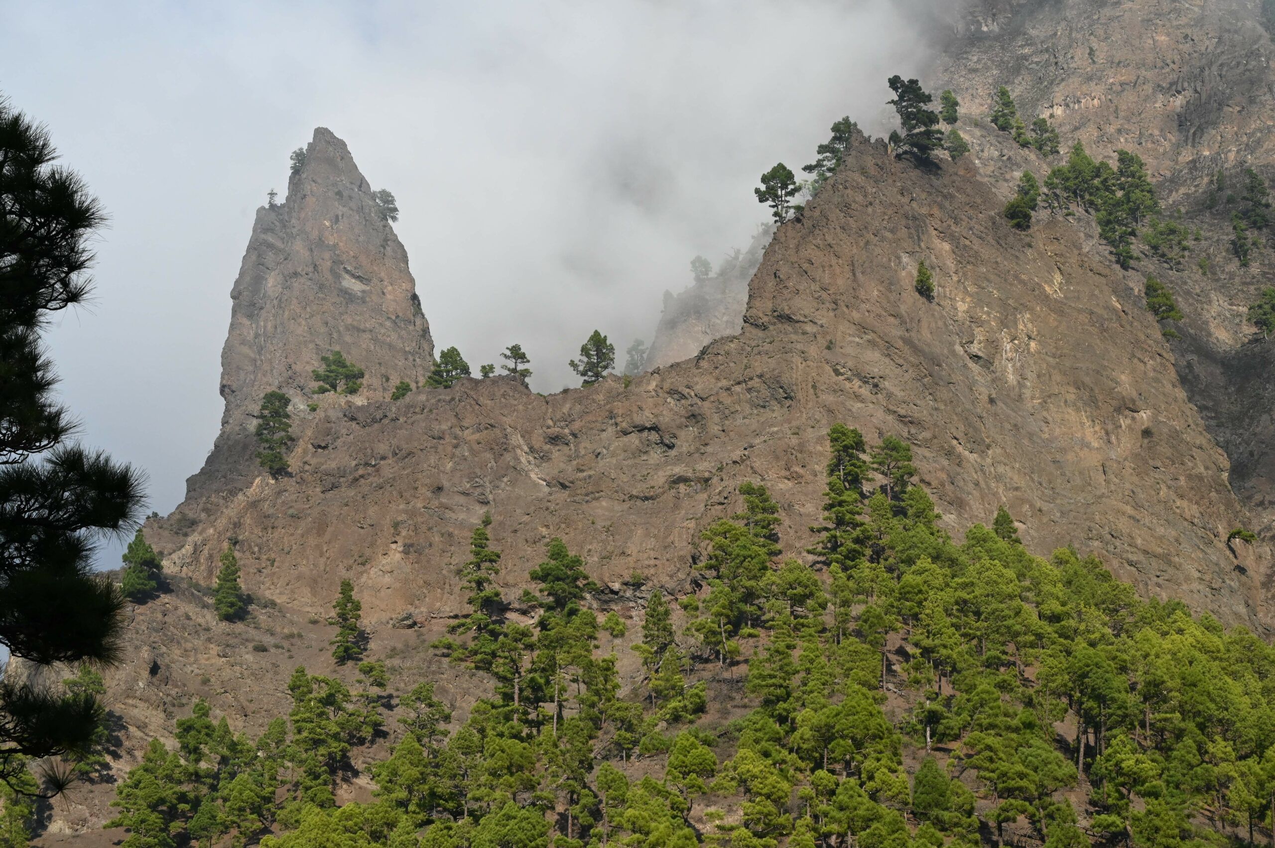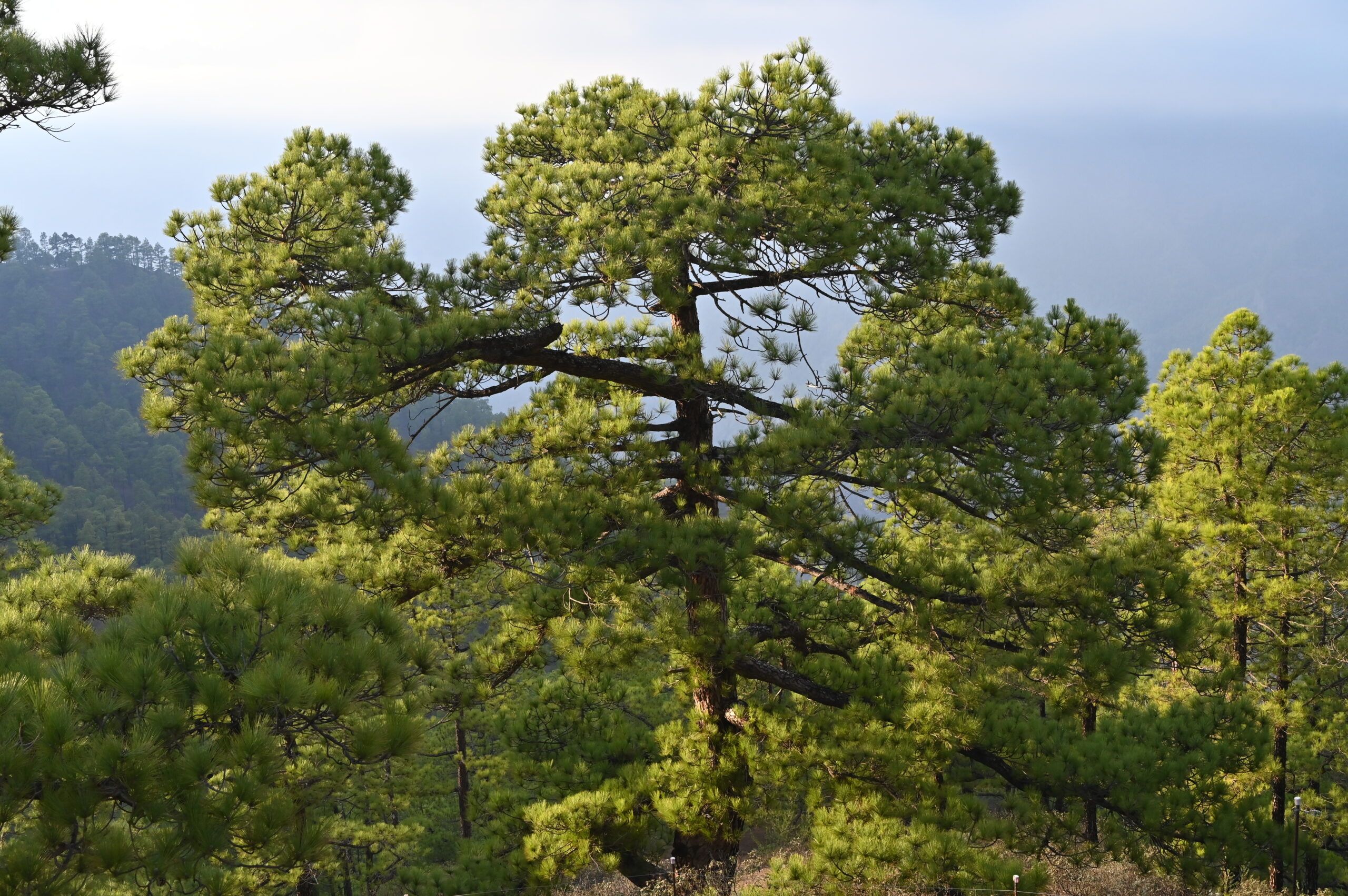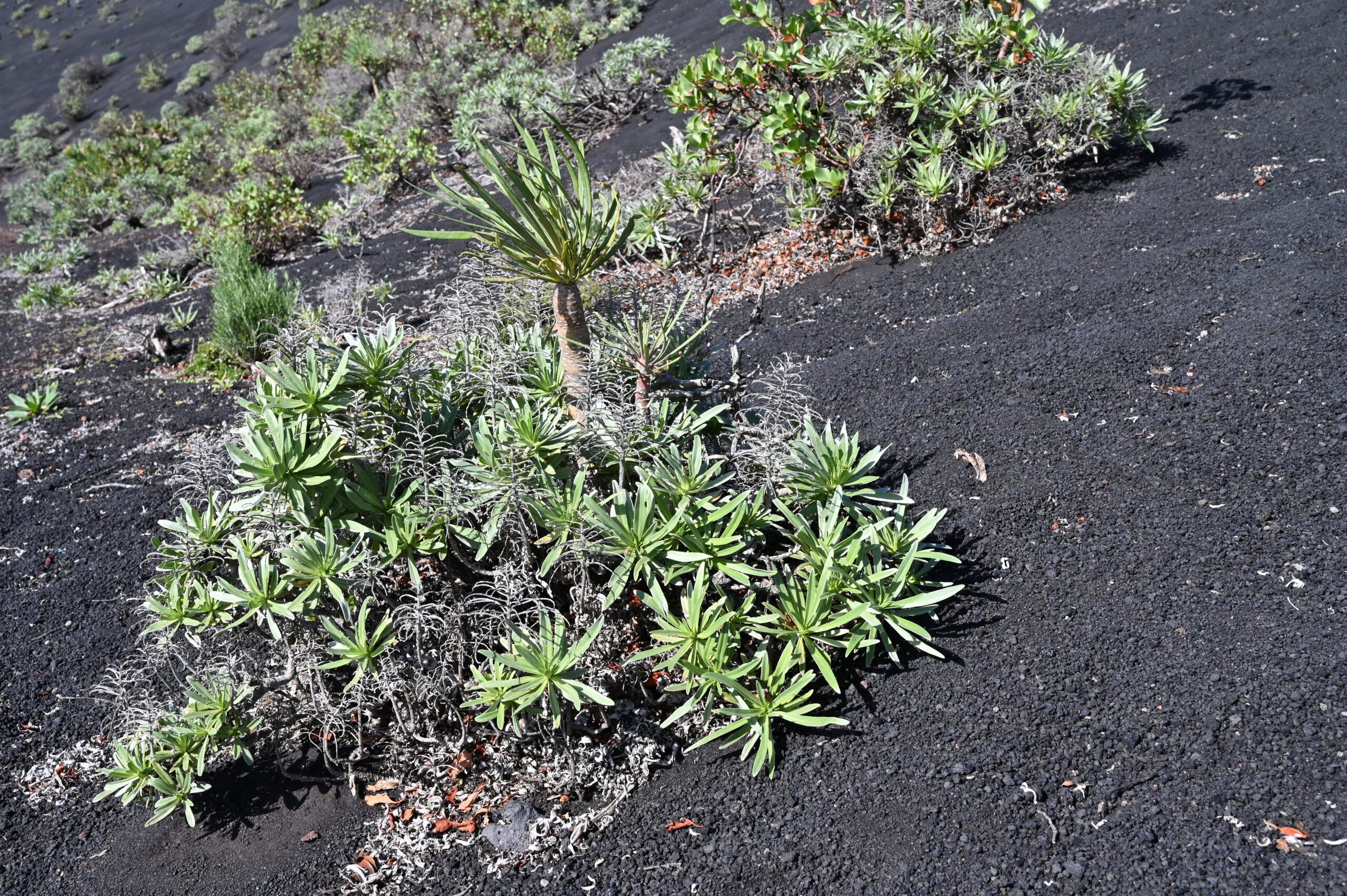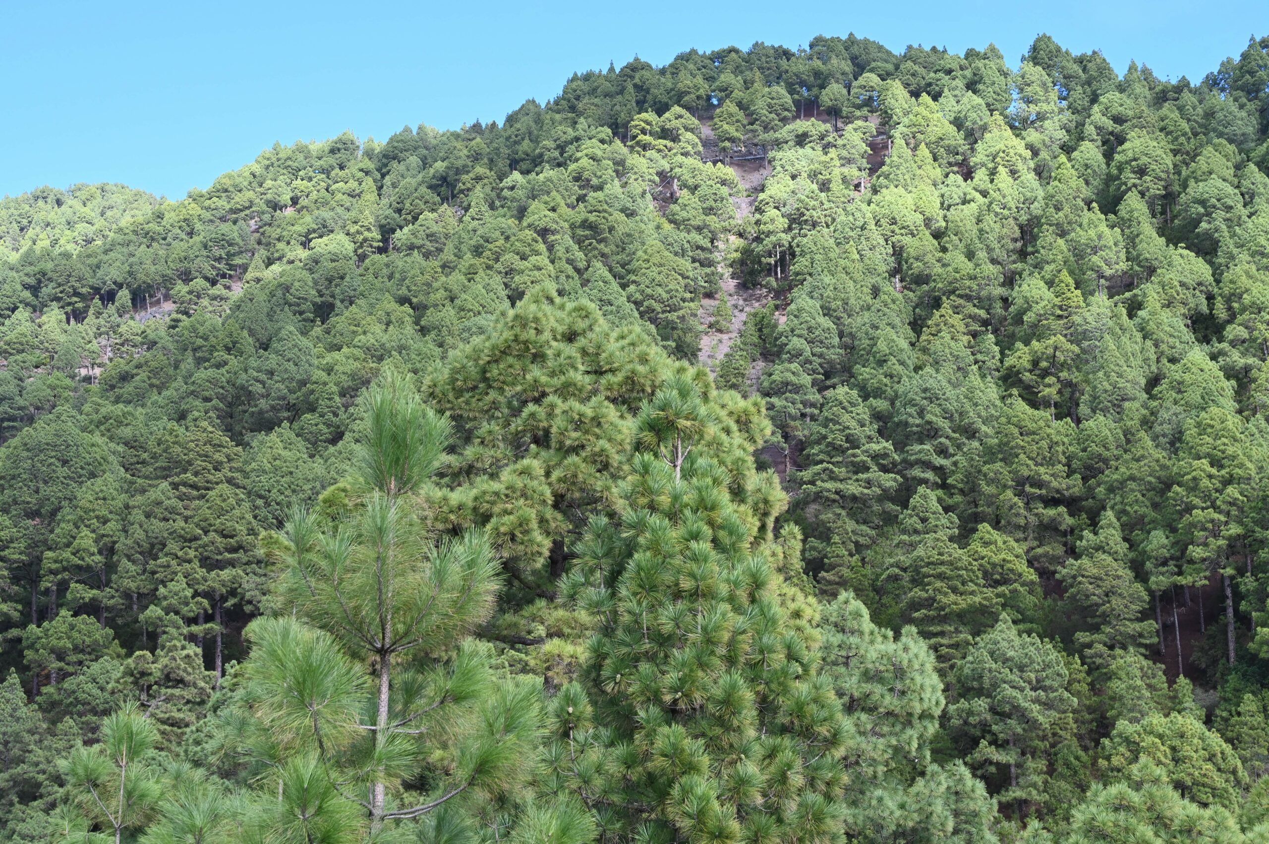 Le volcan San Antonio tout proche a en revanche des pentes presque totalement dénudées, malgré l’ancienneté de l’éruption (1677) ! La pente est trop forte, faite de lapillis. Il y a moins de 10 pins, et dont l’architecture montre la difficulté à vivre dans un tel milieu.