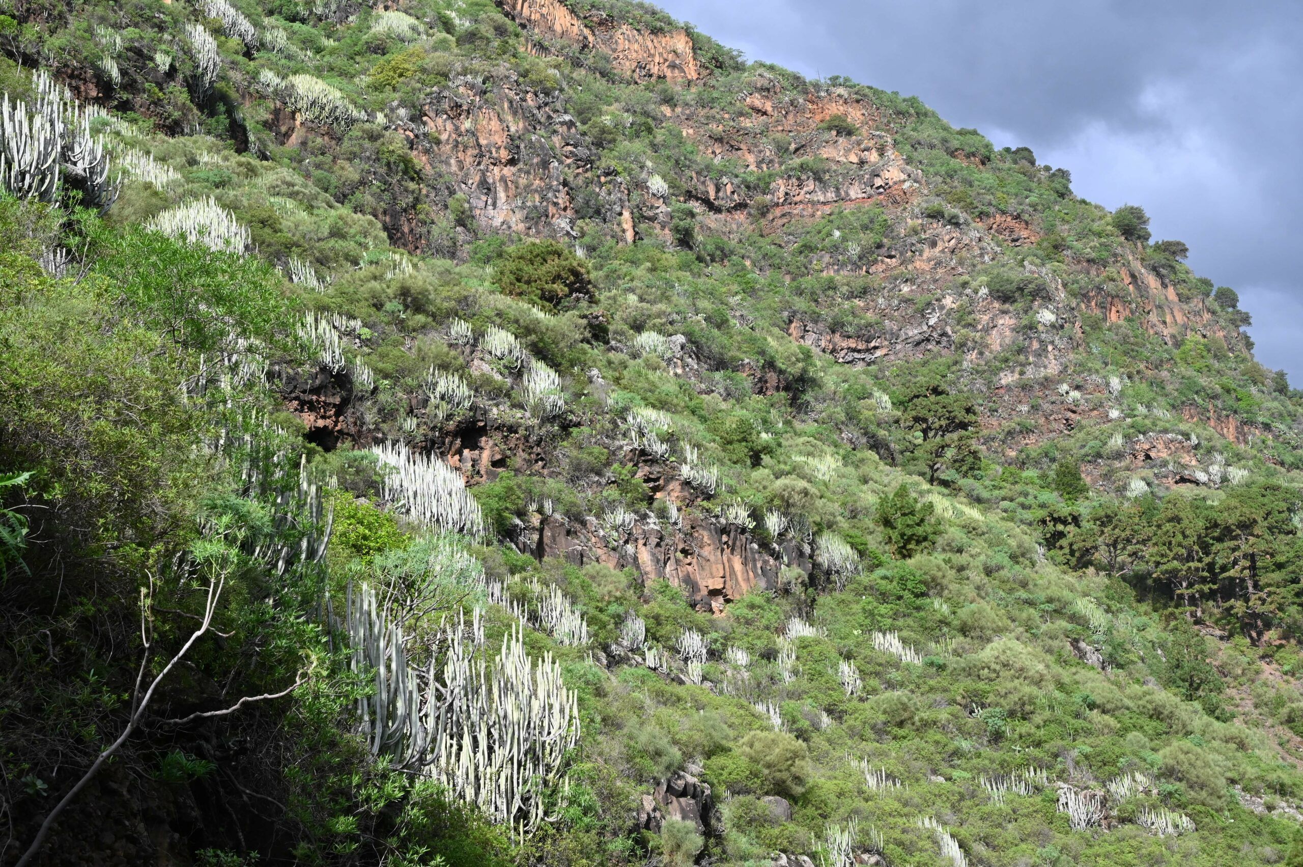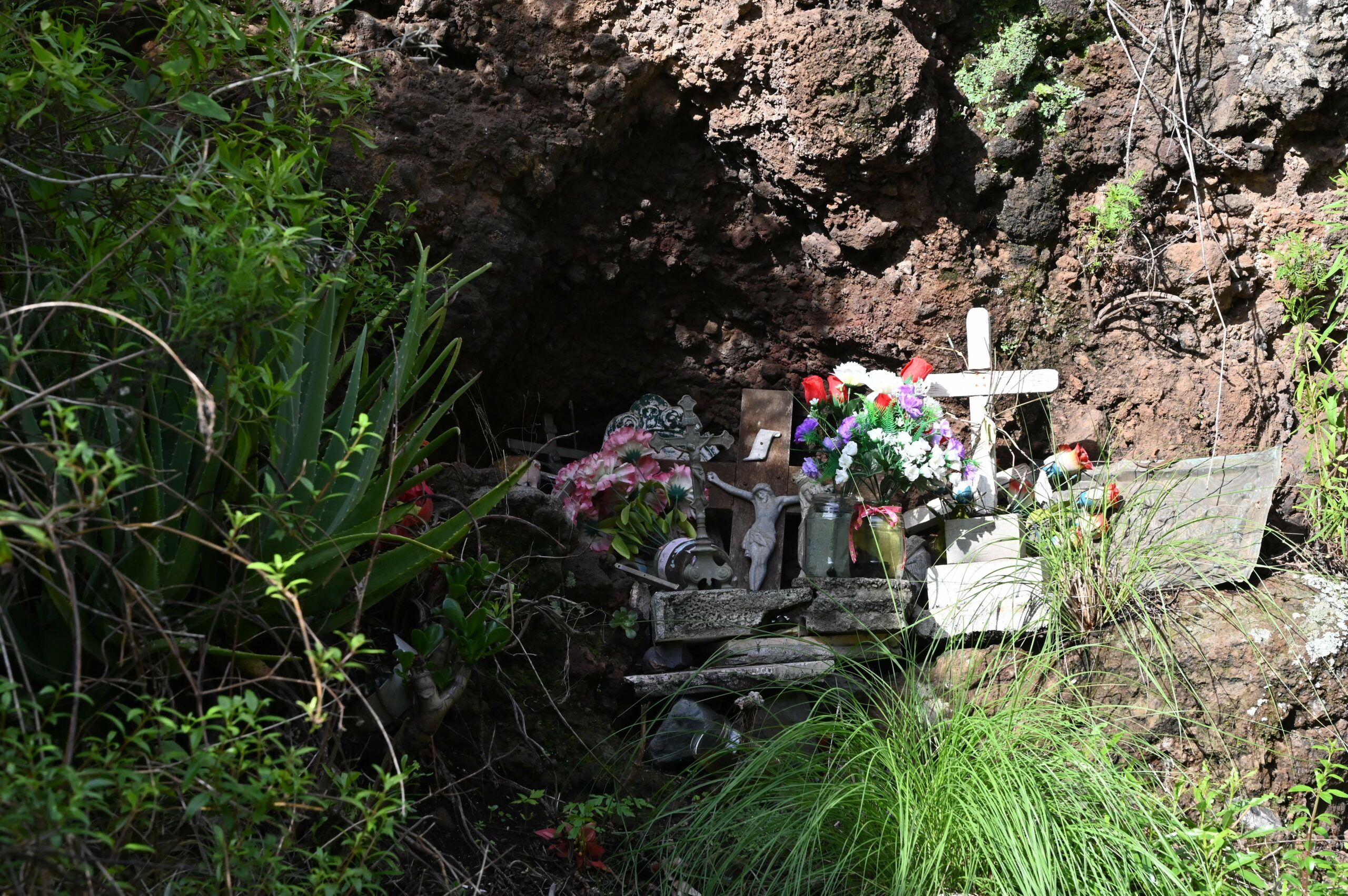 Ce court séjour s’achève par quelques visites naturalistes dans les barrancos (ravins) de Taburiente, où s’accrochent de magnifiques euphorbes endémiques. Comme souvent, on trouve dans les petits tunnels, des croix et des fleurs.