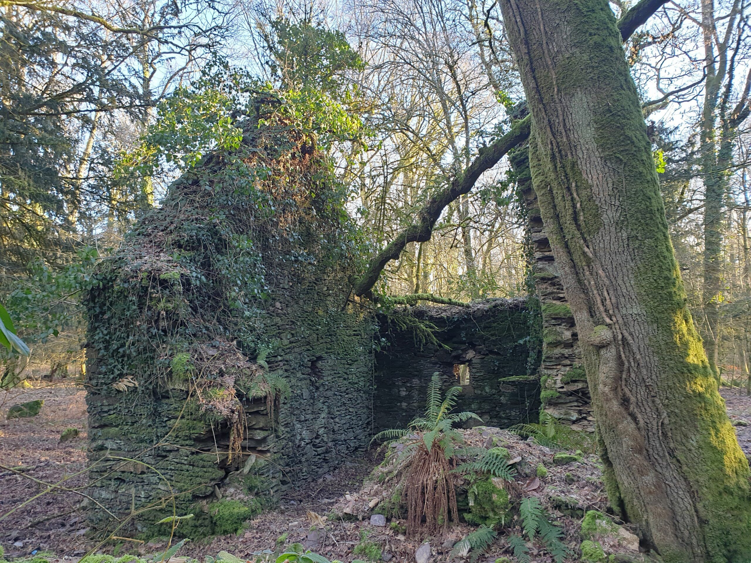 Dans le village de Guillerien, les ruines sont entourées par la forêt. La visite en janvier 2024 sous un beau soleil hivernal était superbe.