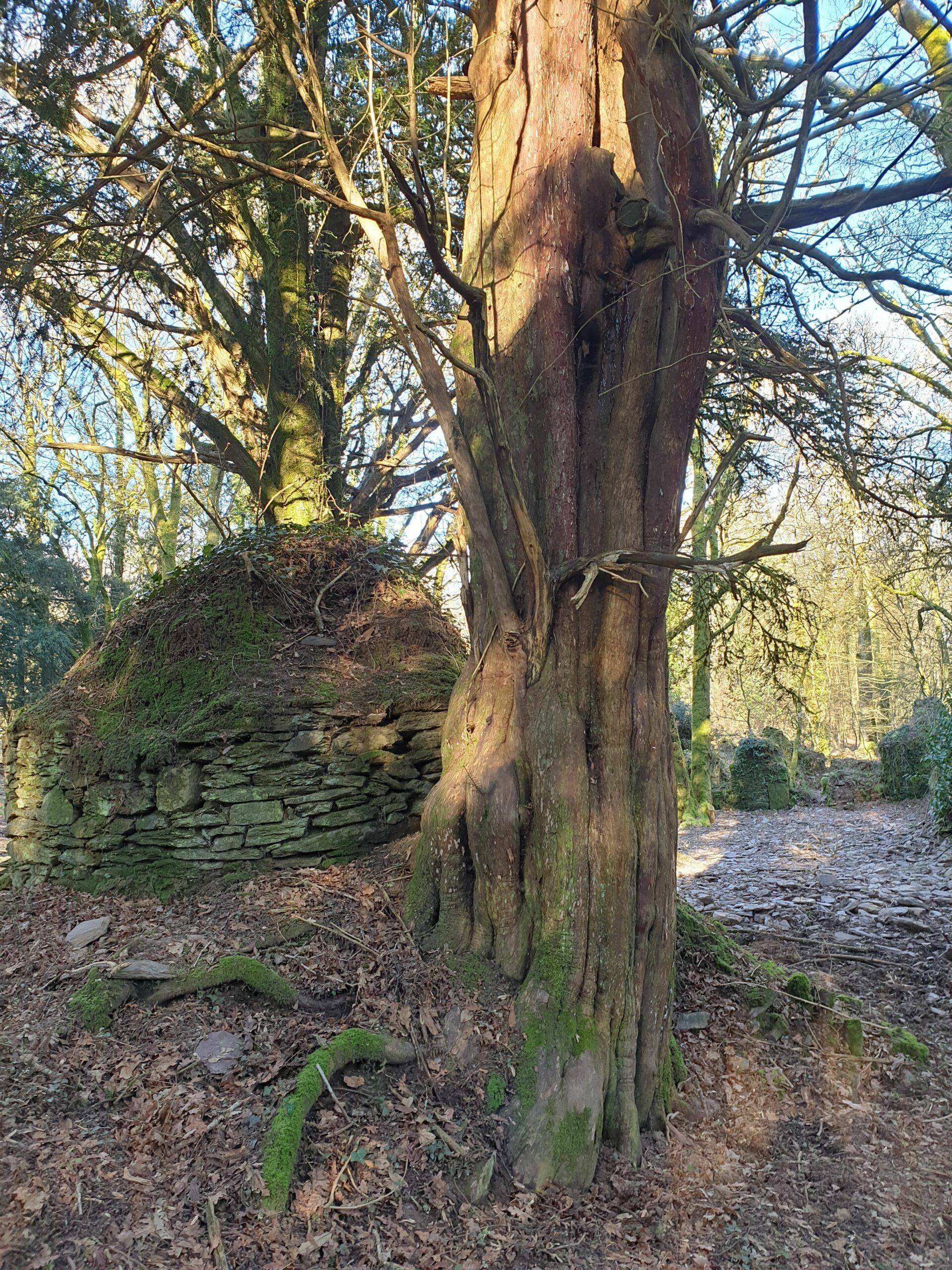 ancien four à pain avec if planté à côté. Cet if a fini par prendre partiellement racine dans le four !