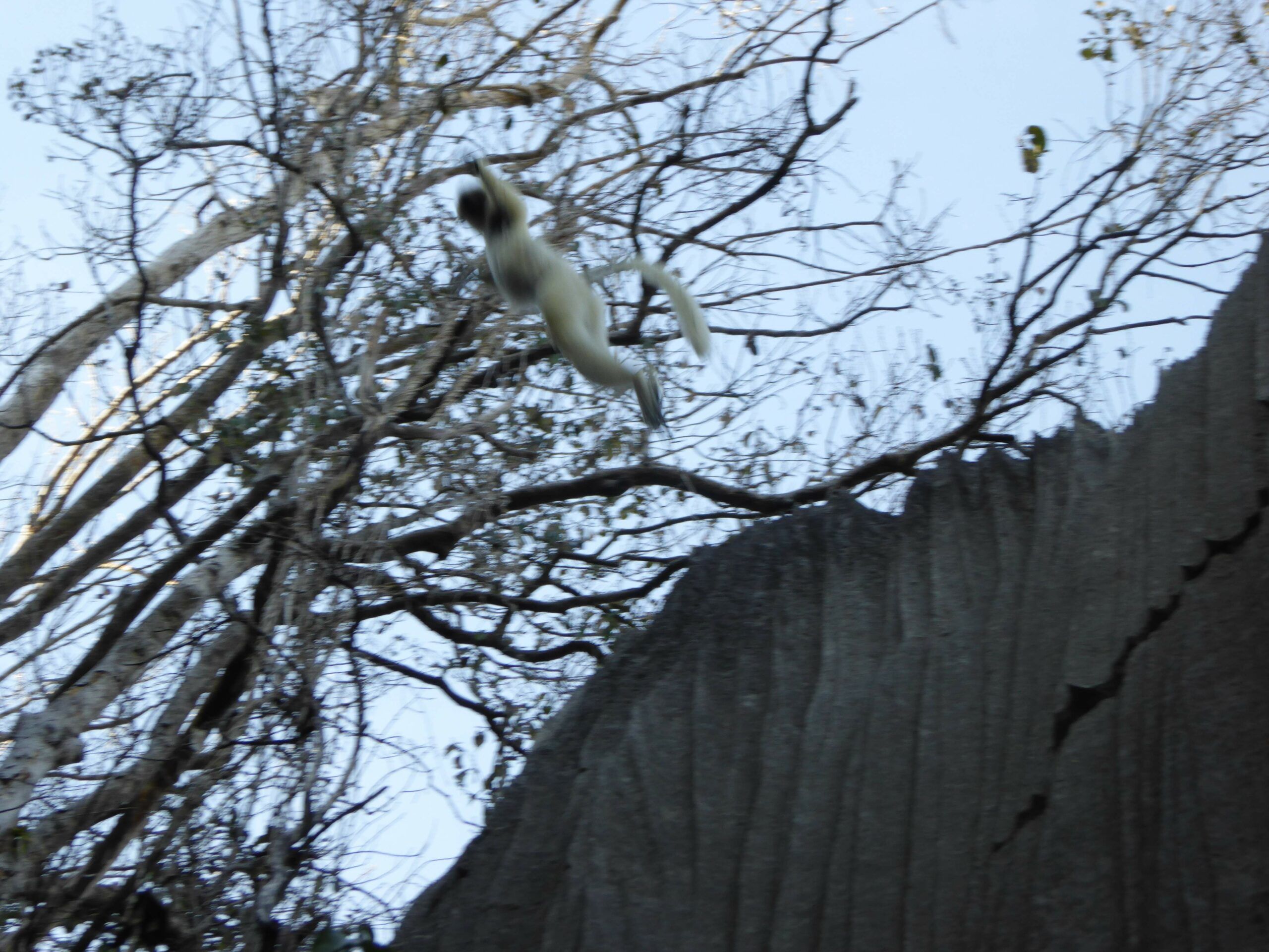 Les Tsingy de Bemaraha sont considérés comme un centre d’endémisme de par leur richesse aussi bien en espèces faunistiques qu’en espèces floristiques. Le milieu est riche : 90 espèces d’oiseaux, 10 espèces de lémuriens, dont j’ai pu voir deux espèces dont le Sifaka (Propithecus verreauxi).