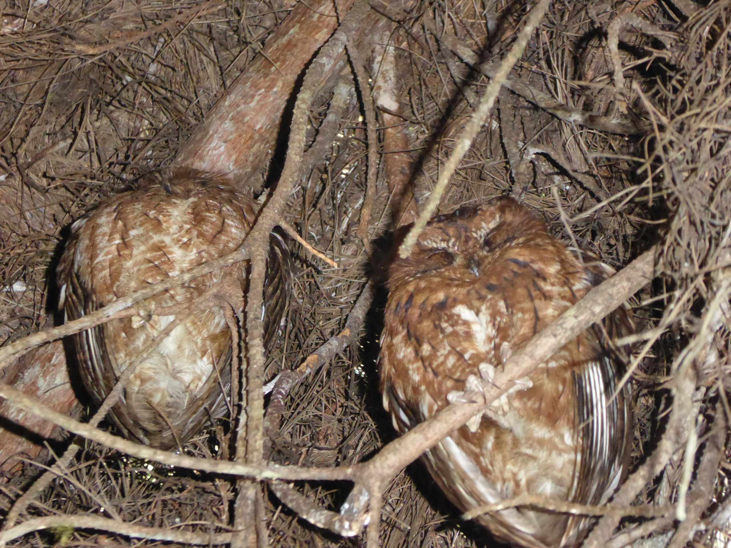 Quelques observations intéressantes, comme ces deux hiboux scops et ces petits invertébrés verts dans l’eau, non identifiés.