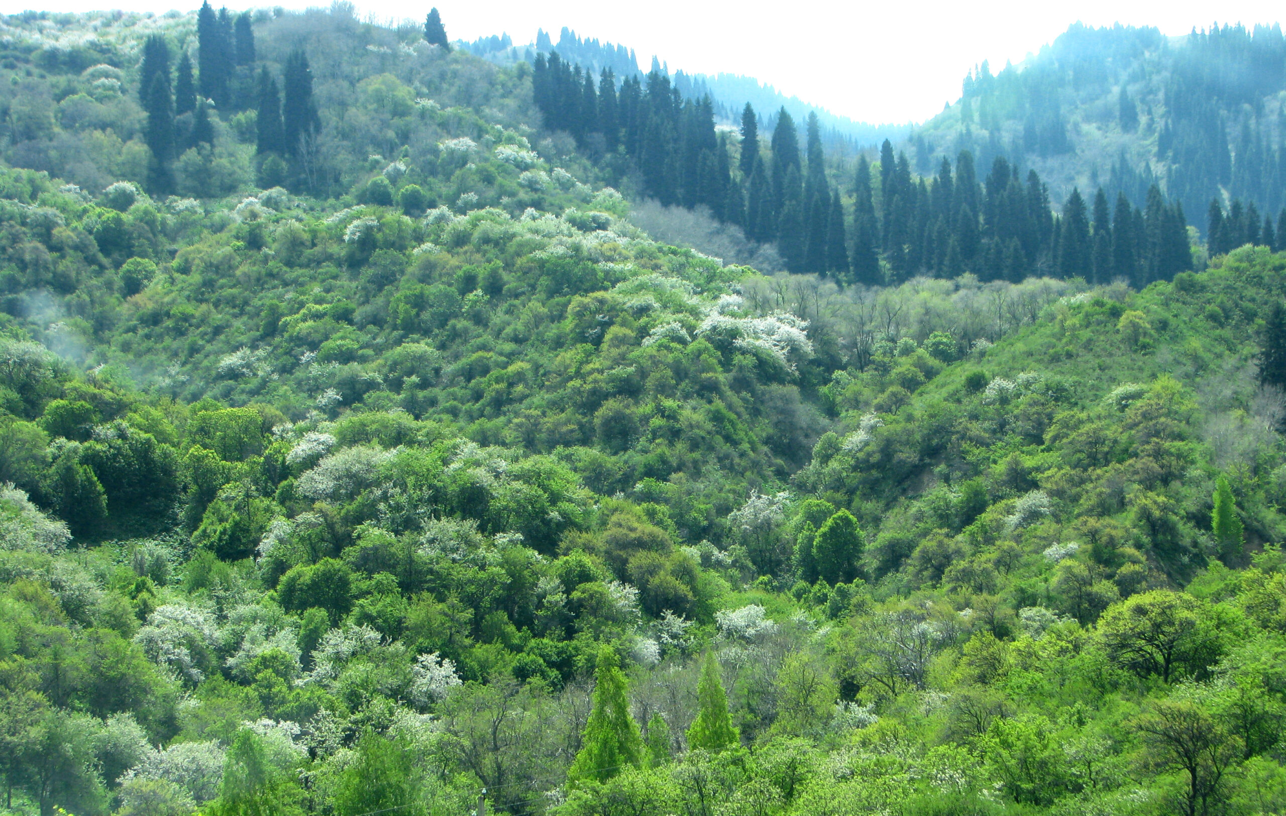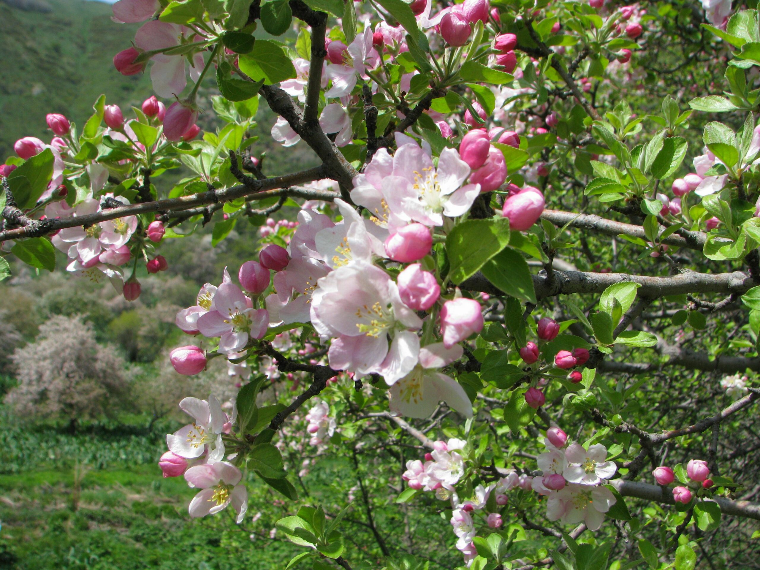 En milieu naturel, les conditions optimales de croissance de cette espèce se trouvent sur sol humide, humifère, et en bonnes conditions lumineuses. L’arbre peut alors atteindre 12 à 14 m de hauteur et des troncs de 70 à 80 cm de diamètre. Ces trois photos ci-dessous illustrent l’abondance des pommiers sauvages dans les montagnes du Tian Shan. Leur floraison en mai est de toute beauté.