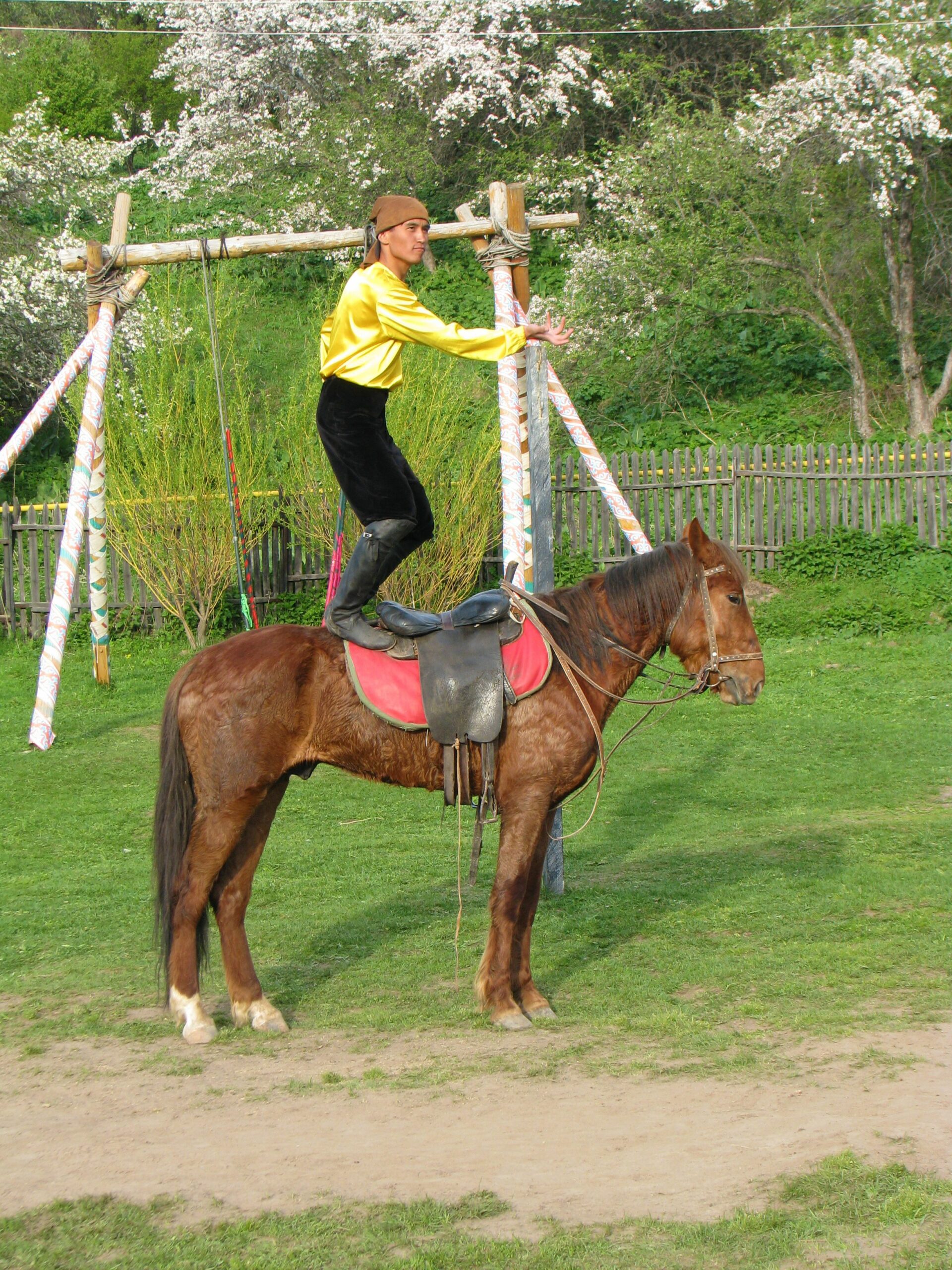 Ci-dessous, 3 usages du cheval: la monture dans la vie quotidienne, la voltige et la nourriture les jours de fête !