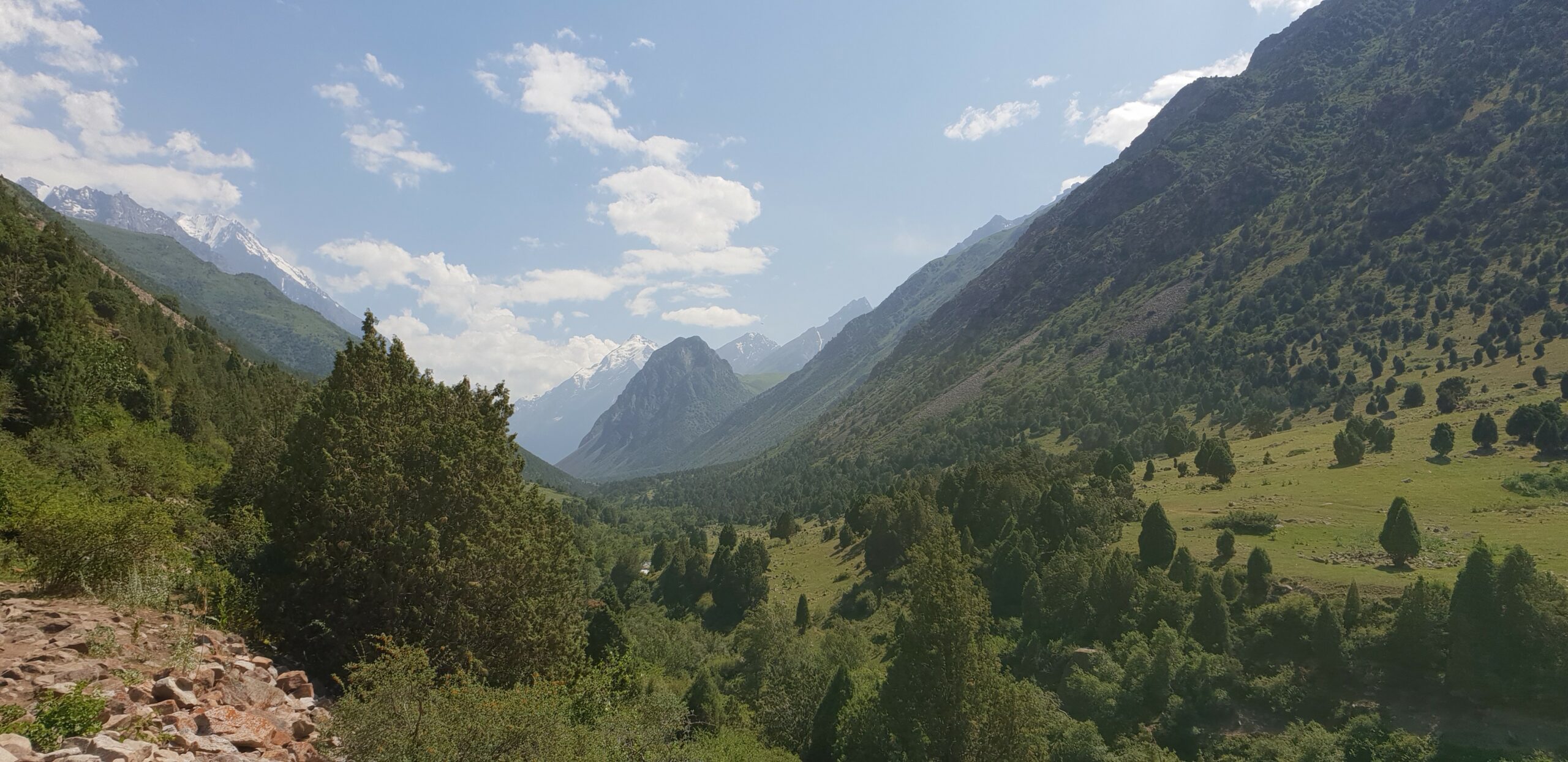 Riches en rivières et lacs, les montagnes du Tian Shan constituent une très vaste île verdoyante du centre de l’Asie, isolées entre le vaste désert Taklimakan en Chine, et les steppes arides du Kazakhstan au nord. Cette situation écologique particulière a permis à un grand nombre d’écosystèmes de se maintenir à l’état de reliques lorsque le climat de l’Asie s’est progressivement aridifié.